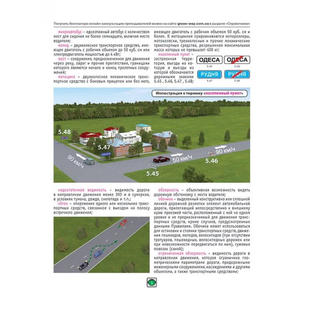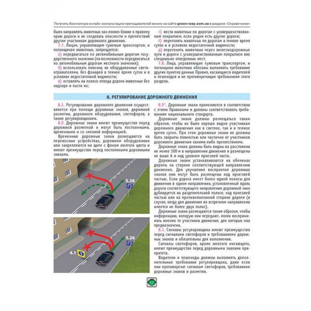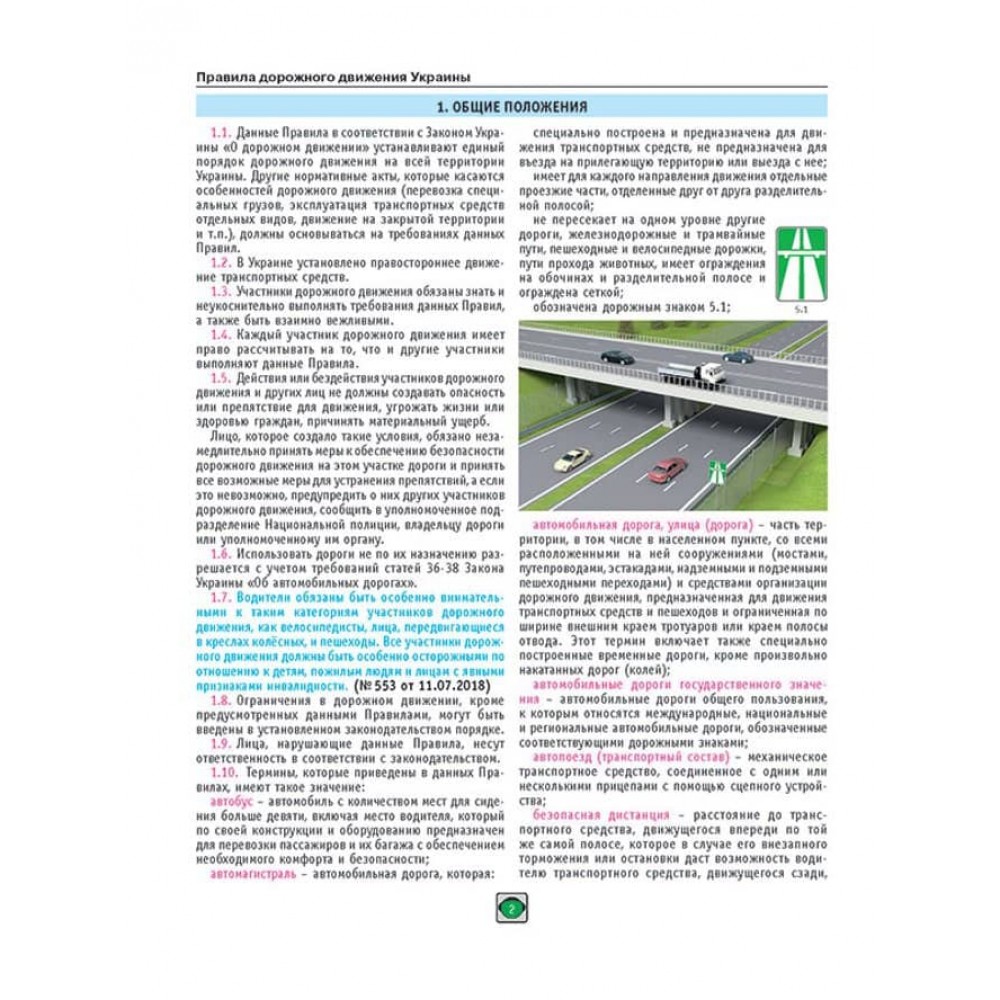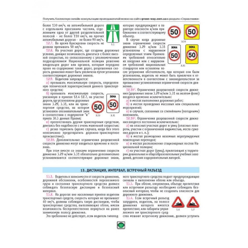 • Кольорові ілюстрації, дорожні знаки та розмітку в тексті Правил
