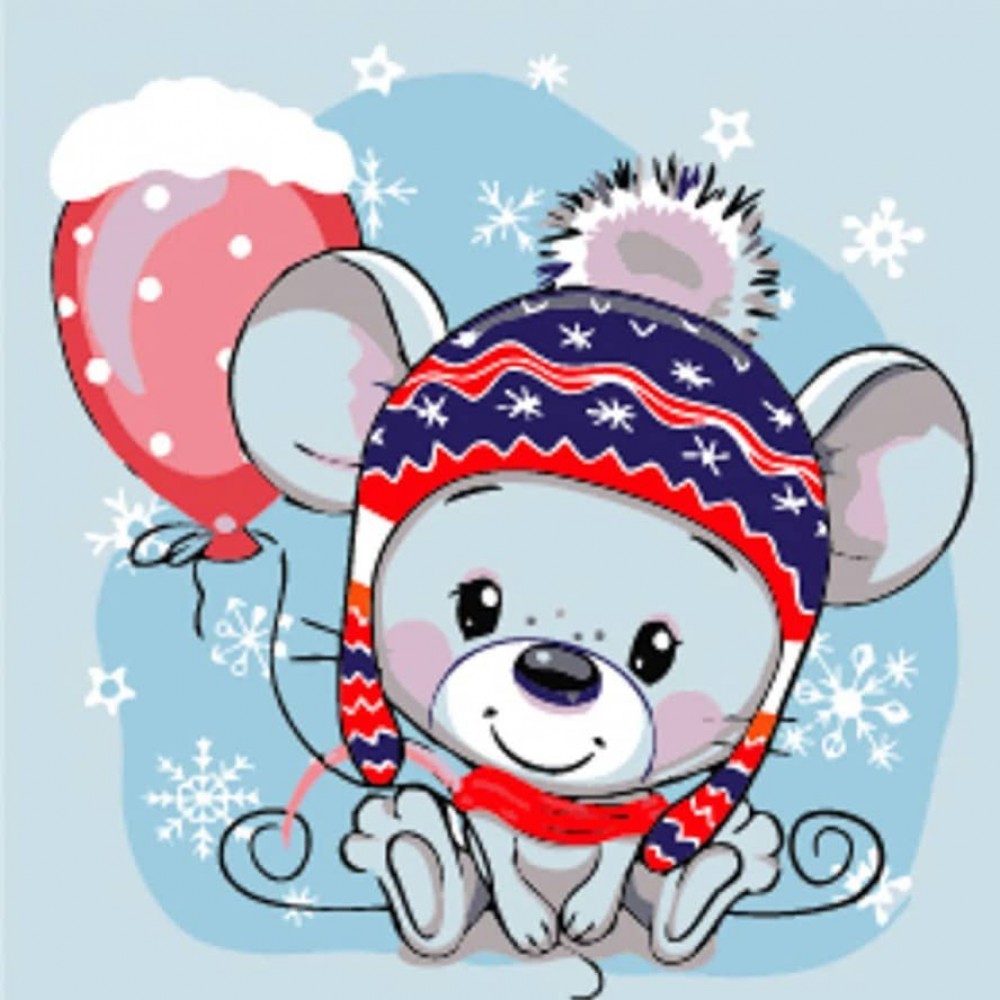Картина за номерами Strateg ПРЕМІУМ Мишка розміром 30х30 см, ES224