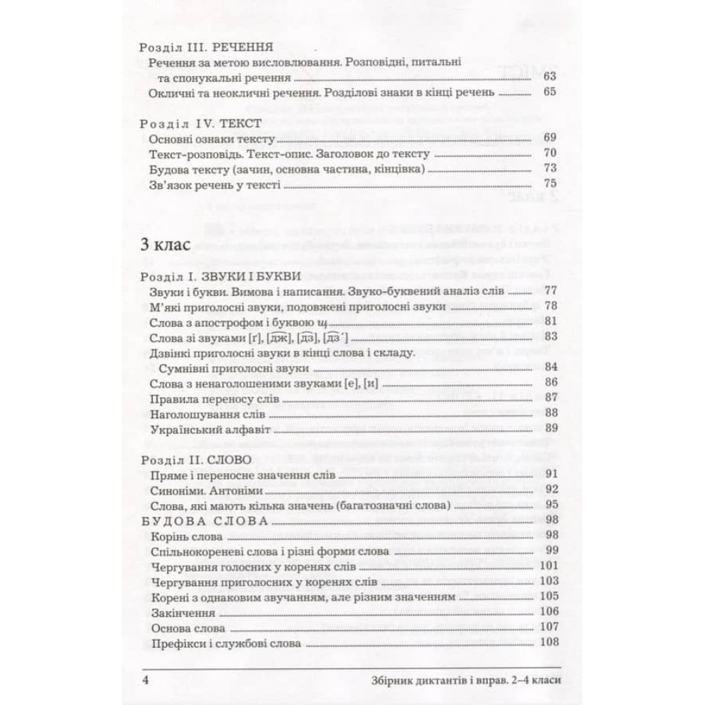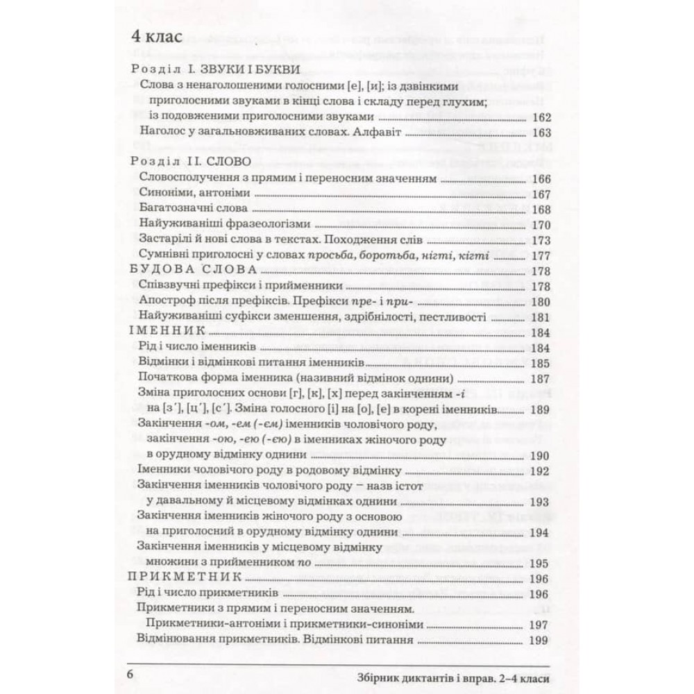 Збірник містить тексти диктантів і вправ з української мови, згруповані за темами типових освітніх програм О. Я. Савченко та Р. Б. Шияна і підручників 2–4 класів. Для диктантів використано адаптовані уривки з творів давно відомих і сучасних українських та зарубіжних авторів. Тексти диктантів і вправ за обсягом та насиченістю орфограмами відповідають вимогам Державного стандарту початкової освіти і віковим особливостям учнів. Тексти цікаві й актуальні своїм виховним та пізнавальним змістом, викличуть у школярів інтерес до твору, бажання його прочитати. Збірник призначено для навчання та діагностики знань програмового матеріалу з української мови. Для вчителів початкових класів і батьків.
