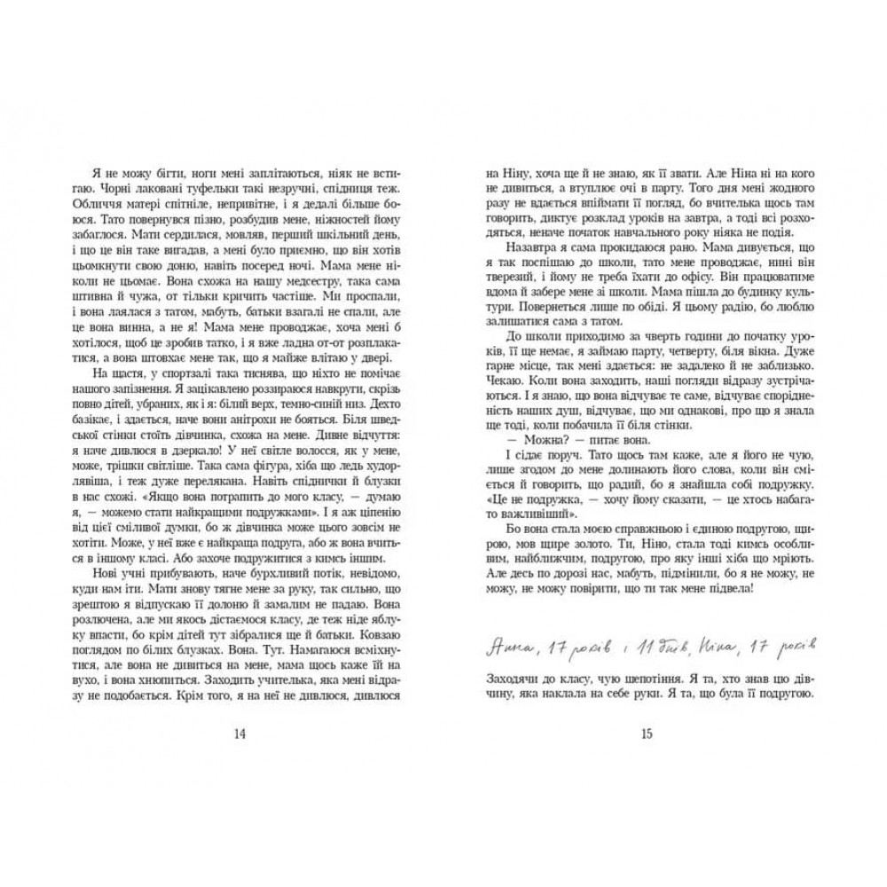 Щось пішло не так, коли Ніна, краща, талановитіша, вродливіша й заможніша, вступає до мистецького ліцею, а Анні забракло зовсім трішки, щоб опинитися поруч із Ніною. Тепер у кожної своя дорога, та дівчата впевнені, що вони досі залишаються рідними душами.Усе змінюється в день народження Анни й Ніни. Відтоді Ніна назавжди залишиться сімнадцятирічною, тоді як Анна щосили намагатиметься знайти відповідь на болюче питання. Чому? Чому її така талановита, така ідеальна подруга наклала на себе руки? Анна ще не знає, що несвідомо йде Ніниним шляхом…