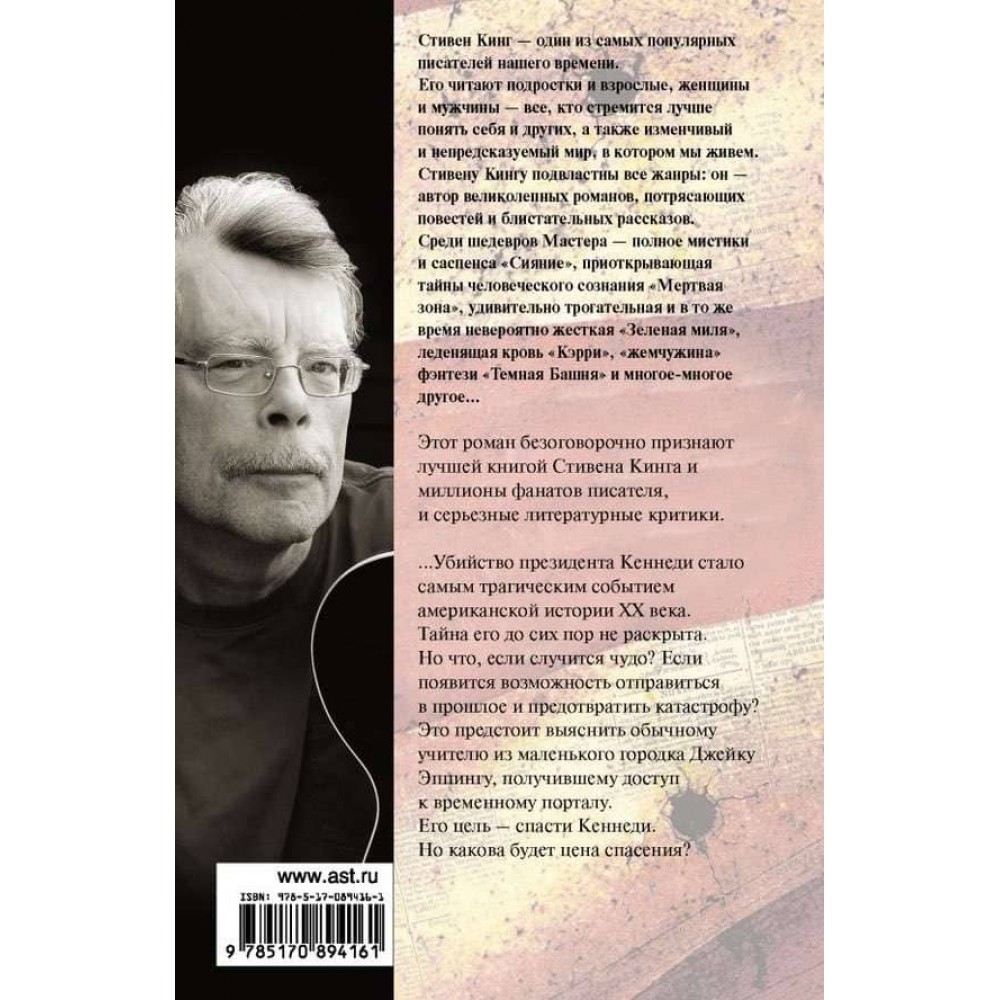 ...Вбивство президента Кеннеді стало найтрагічнішою подією американської історії ХХ століття. Таємницю його досі не розкрито. Але що, коли станеться диво? Якщо з'явиться можливість вирушити в минуле та запобігти катастрофі?