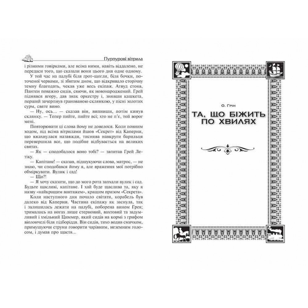 У книзі вміщено 2 романи російського письменника Олександра Гріна «Пурпурові вітрила» і «Та, що біжить по хвилях», які вважаються його найкращими творами, а також філософський твір «Маленький принц», що зробив його автора, французького письменника, професійного льотчика та винахідника Антуана де Сент-Екзюпері, відомим у всьому світі.
