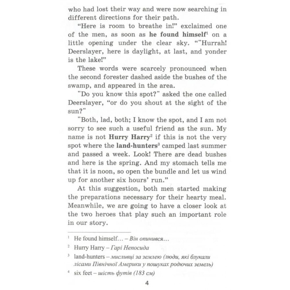 Ця книга містить адаптований текст історичного роману «Звіробій» видатного американського письменника Джеймса Фенімора Купера.