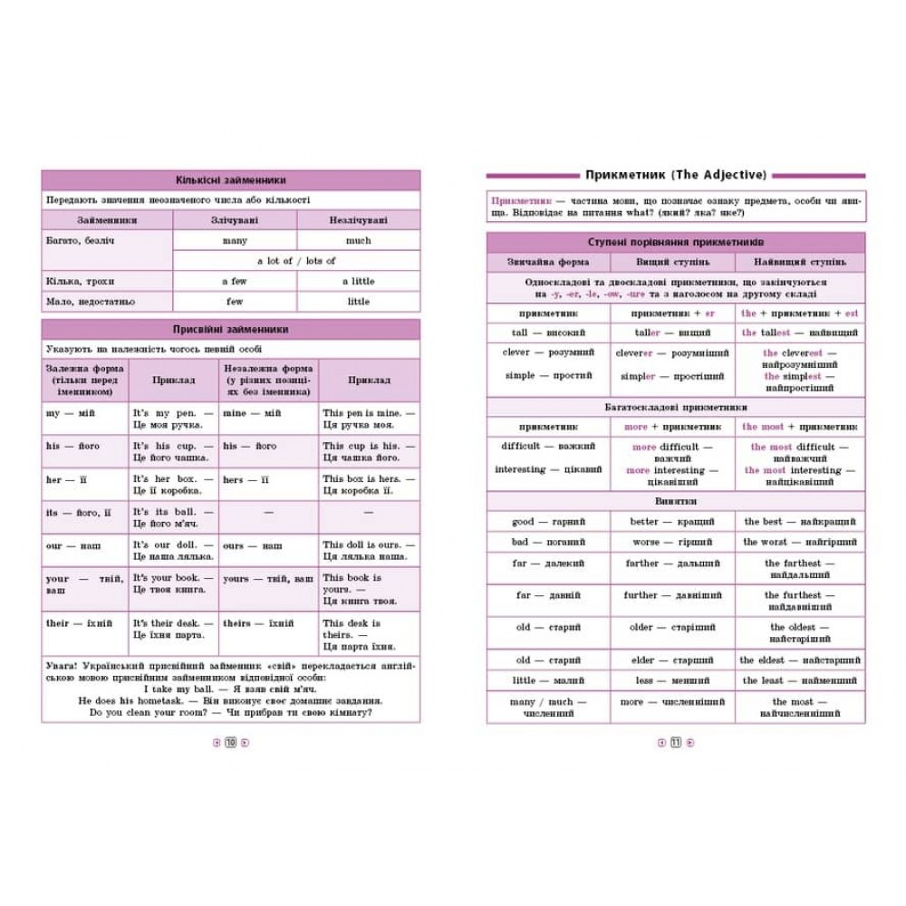 Довідник з англійської мови допоможе учням 5–6 класів покращити свої знання з предмета та підготуватися до самостійних чи контрольних робіт, а також до незалежного оцінювання. Матеріал у посібнику — правила, приклади до них та винятки — подано в таблицях, що спрощує пошук потрібної інформації. Працювати з довідником зручно й легко!