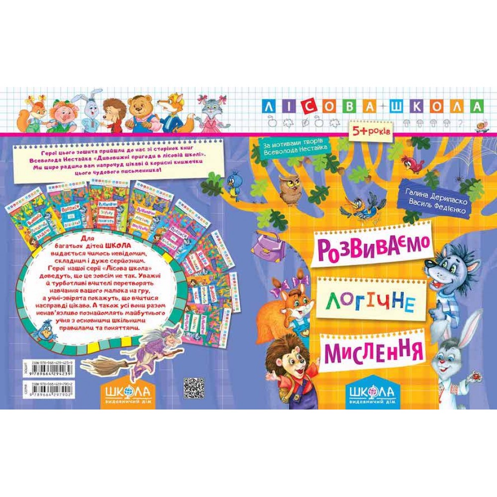 Любі малята! Герої цього зошита прийшли до нас зі сторінок книг «Дивовижні пригоди в лісовій школі» дитячого письменника Всеволода Нестайка. Ми щиро радимо вам ці напрочуд цікаві й корисні книжечки! Для багатьох дiтей ШКОЛА видається чимось невiдомим, складним i дуже серйозним. Герої нашої серiї «Лiсова школа» доведуть, що це зовсім не так. Уважнi й турботливi вчителi перетворять навчання вашого малюка на гру, а учнi-звiрята покажуть, що вчитися насправдi цiкаво. А також усi вони разом ненав’язливо познайомлять майбутнього учня з основними шкiльними правилами та поняттями.