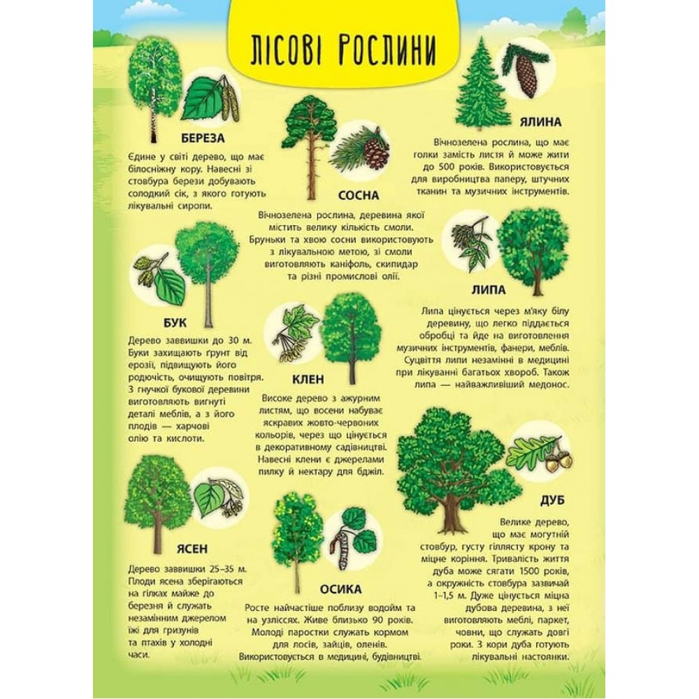 Це видання познайомить дитину зі світом лісу — тваринами, птахами, деревами, ягодами й грибами. У кінці книги малюк знайде захопливу настільну гру, що допоможе весело провести час із друзями, закріпити здобуті знання та пограти з яскравими наліпками, що містяться у виданні.