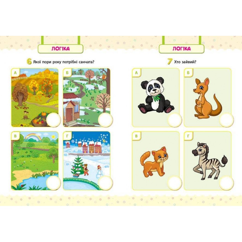 Видання «Мої перші тести з наліпками. 3–4 роки» допоможе батькам перевірити обізнаність малюка за напрямками «Математика», «Логіка», «Я у світі» та «Розвиток мовлення». Запитання кожного розділу укладені відповідно до програм дошкільного розвитку та вікових особливостей дитини. Переглянувши варіанти відповідей, малюк має обрати один і позначити його наліпкою. Проходження таких тестів в ігровій формі зумовить поступове звикання до них й змалечку підготує дитину до тестової форми перевірки знань у майбутньому. Окремим додатком до тестів будуть сюжетні кольорові прописи, що допоможуть дитині навчитися домальовувати малюнки по пунктиру та розфарбовувати їх. Видання сприятиме розвитку уваги, мислення й графічних навичок, тренуванню пам’яті й дрібної моторики пальців рук, спонукатиме до акуратності.