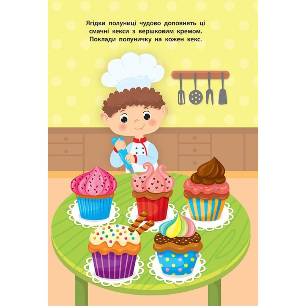 Книжка допоможе малюку весело й пізнавально провести час і відчути себе справжнім кондитером. Виконуючи прості завдання за допомогою наліпок, дитина розвине фантазію, мислення та дрібну моторику пальців рук. Видання призначене для спільної роботи дорослих з дітьми дошкільного віку.