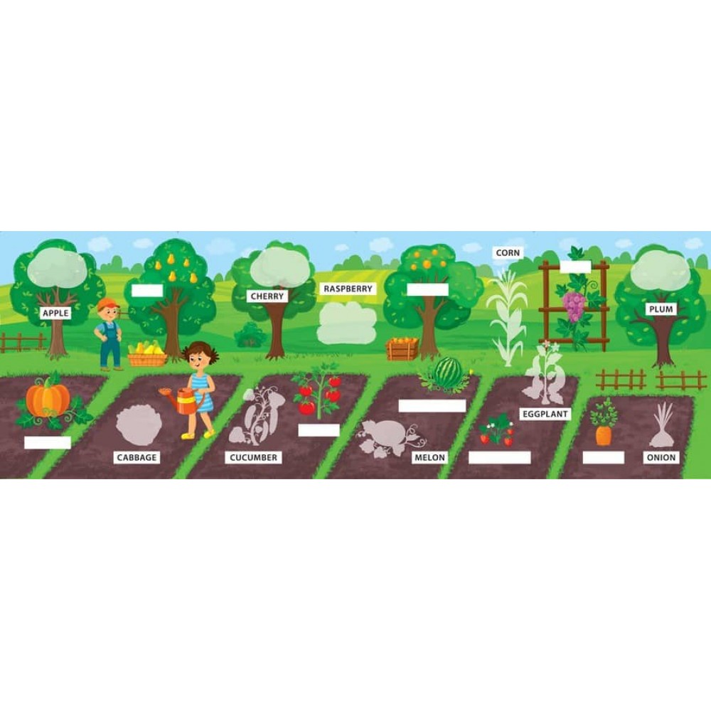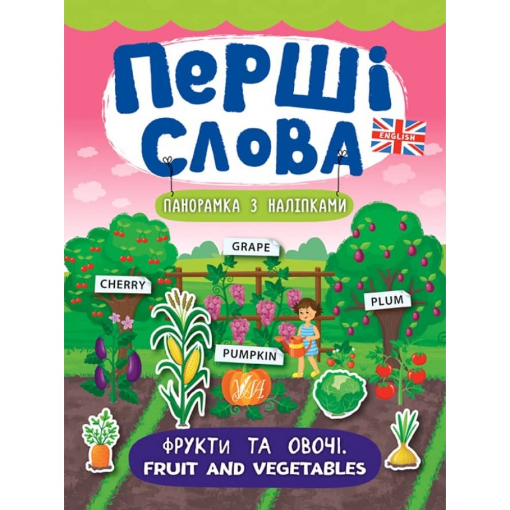 Ця книжка допоможе дитині вивчити назви овочів, фруктів і ягід англійською мовою, поповнити словниковий запас, розширити кругозір, розвинути творче мислення, фантазію та кмітливість, а також покращити дрібну моторику пальців рук. Велика панорамна картинка, ілюстрований словничок, кольорові наліпки та незвичайний формат гарантують вам і вашому малюку захопливе й пізнавальне дозвілля! Видання призначене для спільної роботи дорослих з дітьми дошкільного віку.
