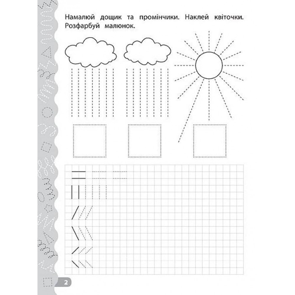 Зошит спрямований на на підготовку руки до письма та розвиток дрібної моторики. Працюючи із цим виданням, дитина зможе не тільки опанувати основні графічні навички — наведення контурів, шитрихування, проведення прямих, кривих та ламаних ліній, малювання по клітинках і лінійках, але й розважитися: виконати захопливі завдання за допомогою наліпок. Прописи призначені для спільної роботи дорослих з дітьми дошкільного віку.