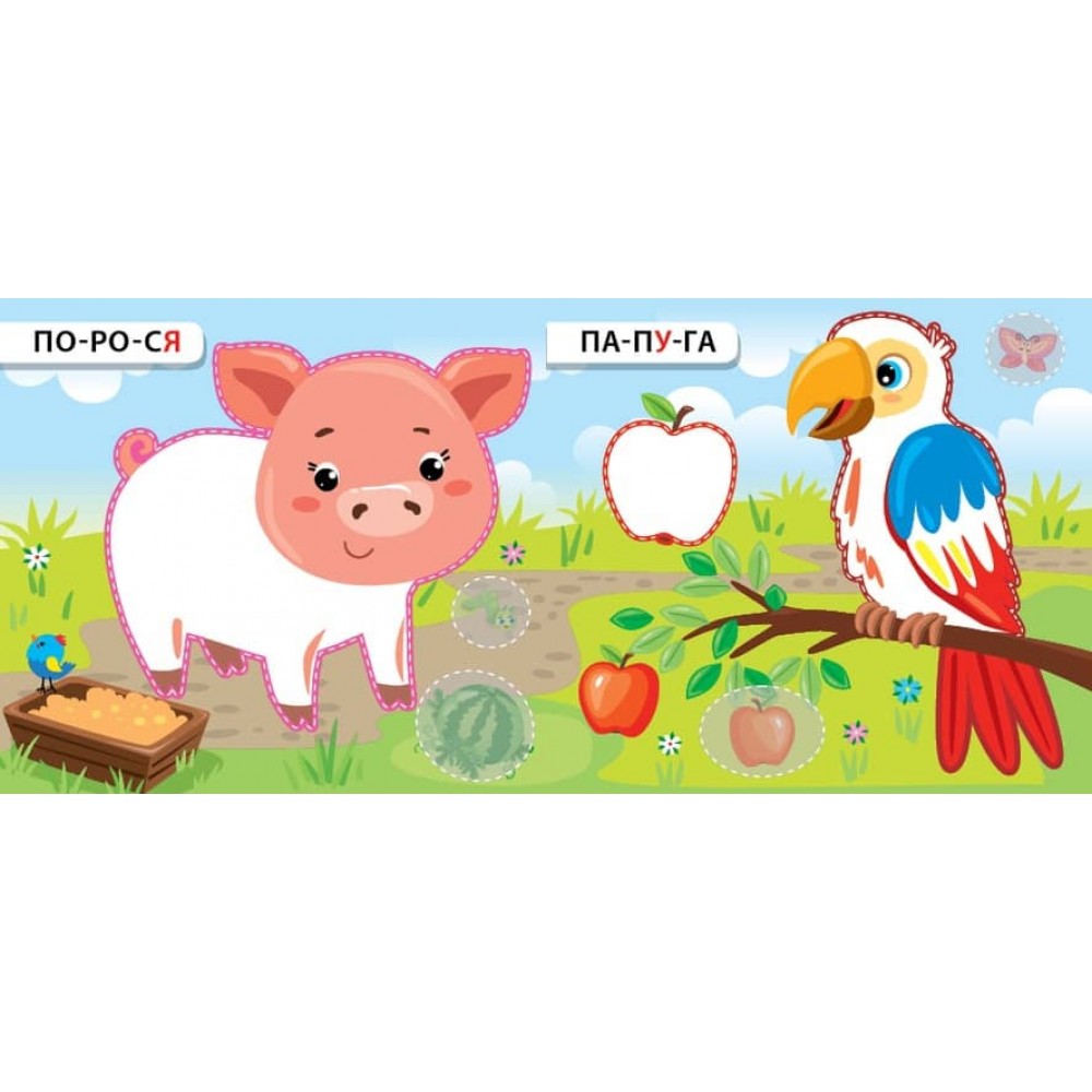 Ця книжка допоможе малюкам пізнавати навколишній світ. На її сторінках містяться великі малюнки домашніх улюбленців, на яких потрібно навести пунктирні лінії та розфарбувати окремі елементи. Також діти зможуть вимовити по складах назви тварин і доповнити наліпками сторінки, що сприятиме розвитку мовлення, дрібної моторики пальців рук та більш різноманітній роботі з книжкою. Видання призначене для спільної роботи дорослих з дітьми від трьох років