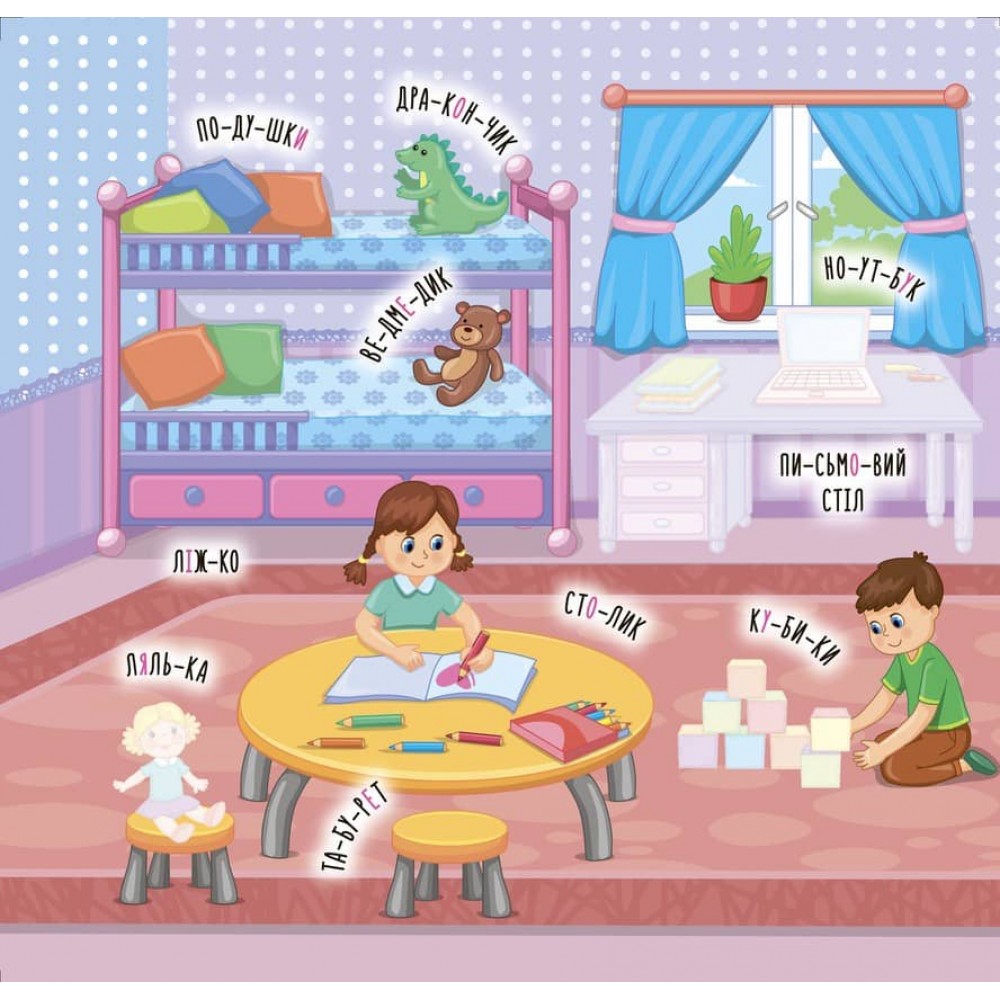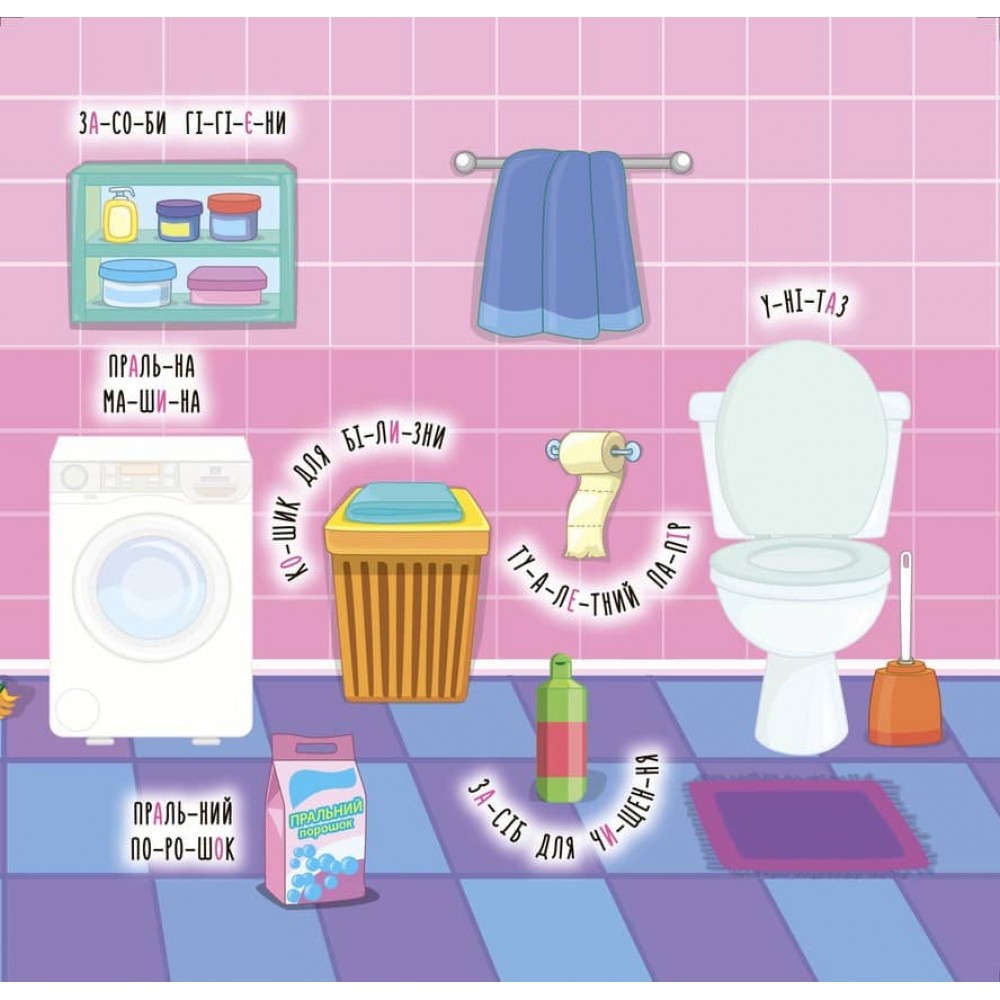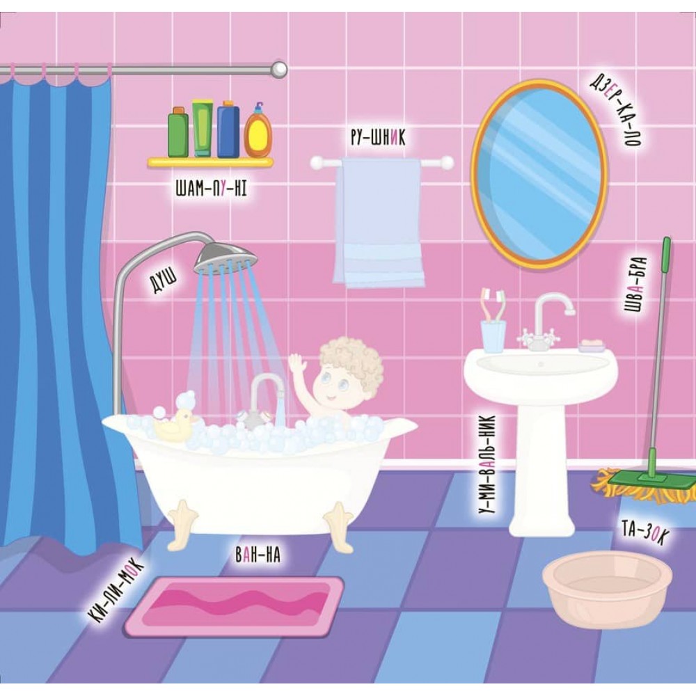 Книга познайомить малюка з меблями, посудом, іграшками та іншими хатніми речами.