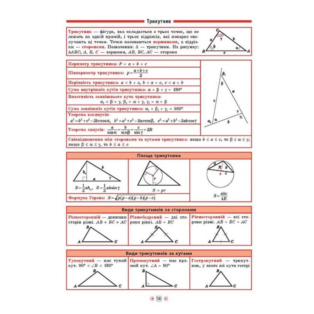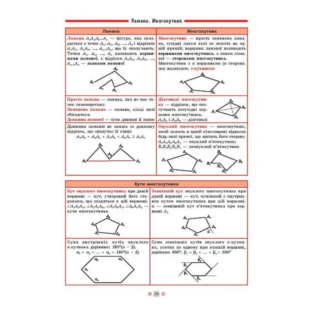 Довідник з геометрії допоможе учням 7-11 класів покращити свої знання та підготуватися до самостійних чи контрольних робіт, а також незалежного оцінювання. Інформація подана стисло та чітко у вигляді таблиць, що спрощує пошук потрібної інформації — теорем, визначень чи креслень. Працювати з довідником зручно та швидко!
