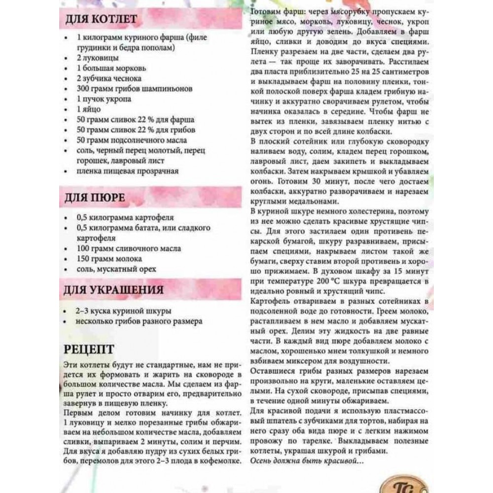 Ця книга адресована всім, хто бажає не просто готувати на домашній кухні смачні страви, а й гарно подавати їх на стіл. Представлені у книзі рецепти грають фарбами, як картини художника, написані у стилі модернізму, романтизму чи поп-арту, вони різнопланові.