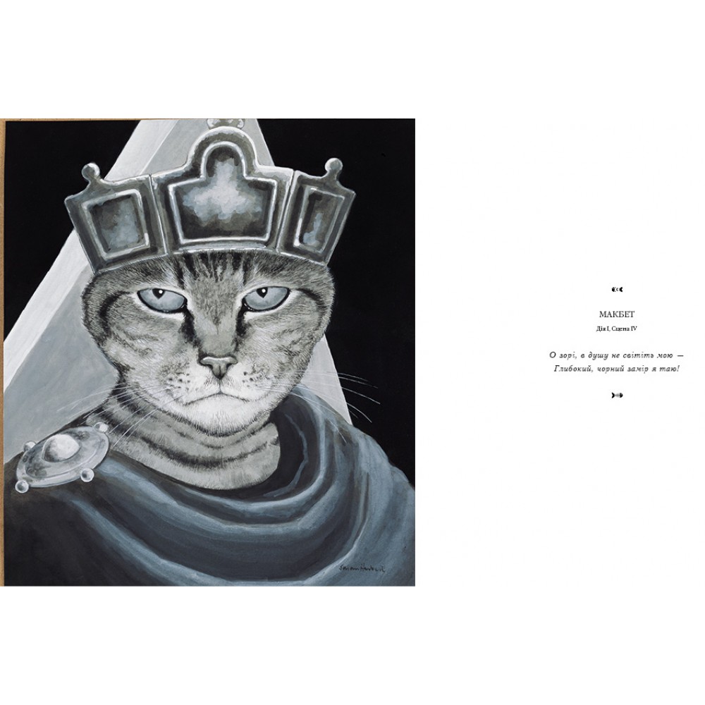 Чарівні й вигадливі акварелі Сьюзан Герберт відтворюють знамениті сцени живопису, театру, опери та кіно за допомогою чудового розмаїття котячих персонажів. Наша перша зупинка — світ мистецтва, де пухнасті мордочки і котячі хвостики визирають із шедеврів живопису. Згодом коти виходять на сцену і грають у найулюбленіших шекспірівських п’єсах та в найбагатших оперних постановках. Наприкінці ми заглядаємо в Голлівуд, де коти грають головні ролі практично всюди: від великобюджетних епічних стрічок до культової класики, вживаючись у велич золотої ери кінематографу.