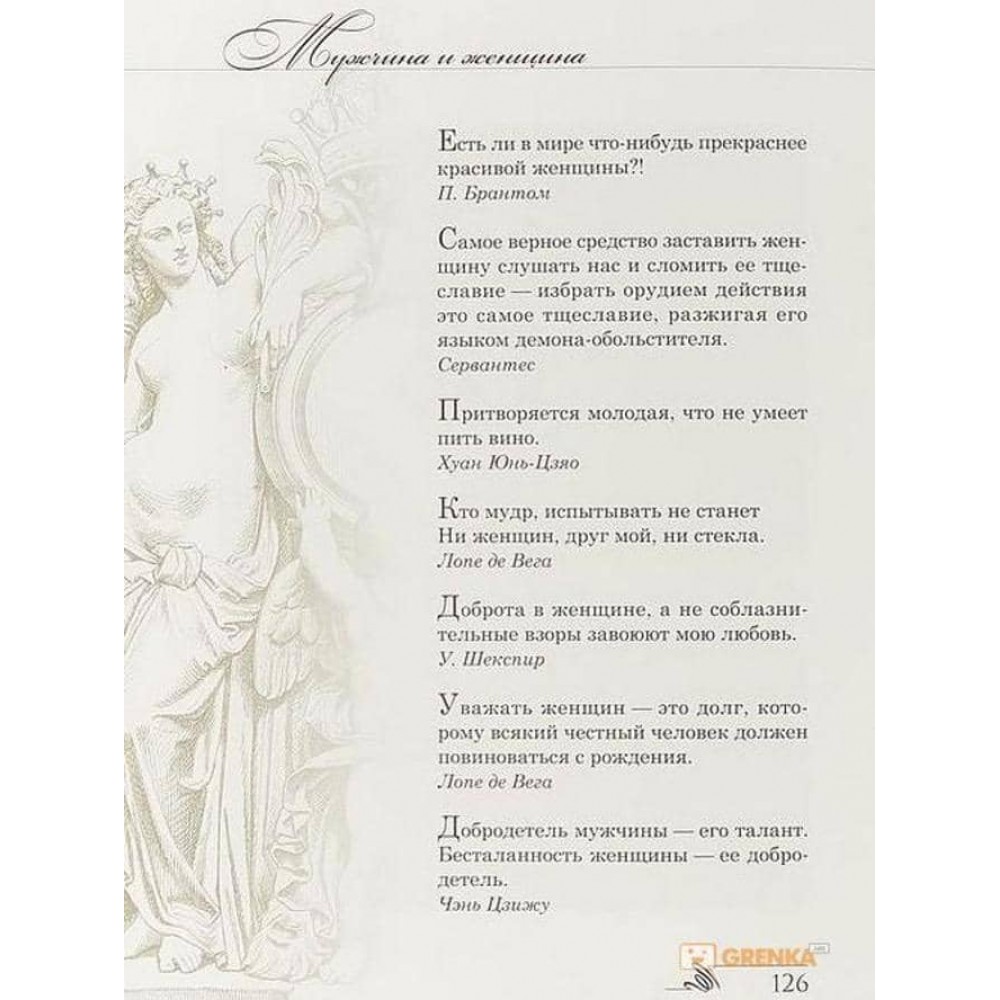 У цій розкішній збірці зібрано воєдино дорогоцінну частину інтелектуальної спадщини людства - афоризми, мудрі думки, зразки витонченої літератури, сакральні заповіді, перлини філософських трактатів, близькі до серця віршовані форми.