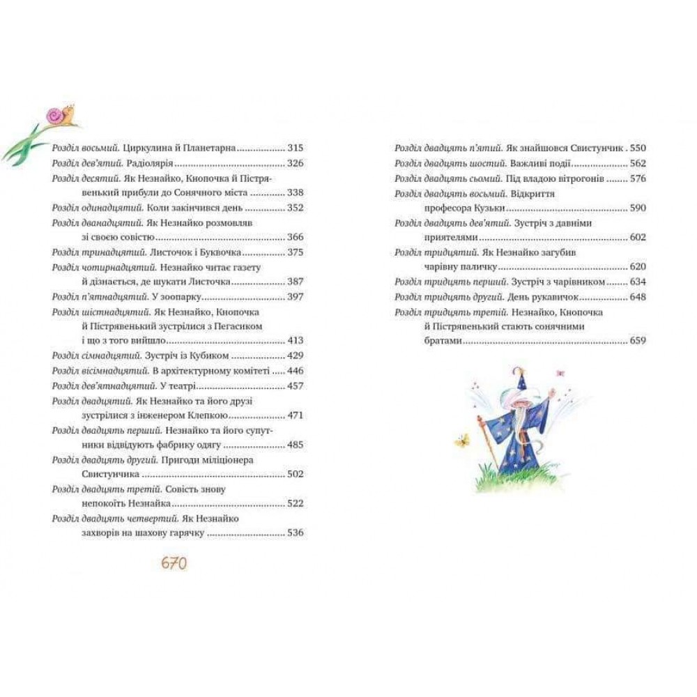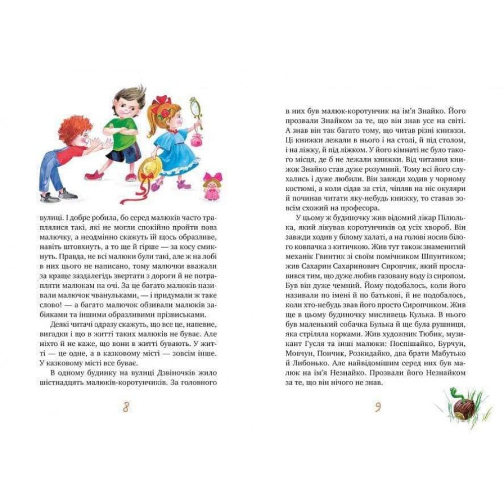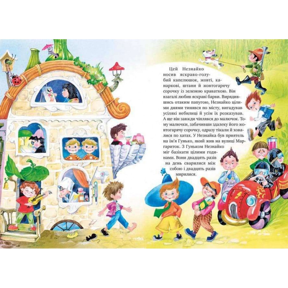 На книжках Миколи Носова про пригоди бешкетника та фантазера Незнайка виросло не одне покоління дітей. Із Незнайком і його друзями завжди трапляються кумедні історії. До того ж дізнаватися про те, як влаштовано світ малюків і малючок, завбільшки з огірок, надзвичайно захопливо. І це ще не все. Із, здавалося б, легкої та веселої книжки можна почерпнути чимало цікавих наукових фактів, а також довідатися про будову механізмів, які набагато випередили свій час. Така надзвичайна книжка, та ще й щедро ілюстрована, стане справжнім святом і для сучасного читача.