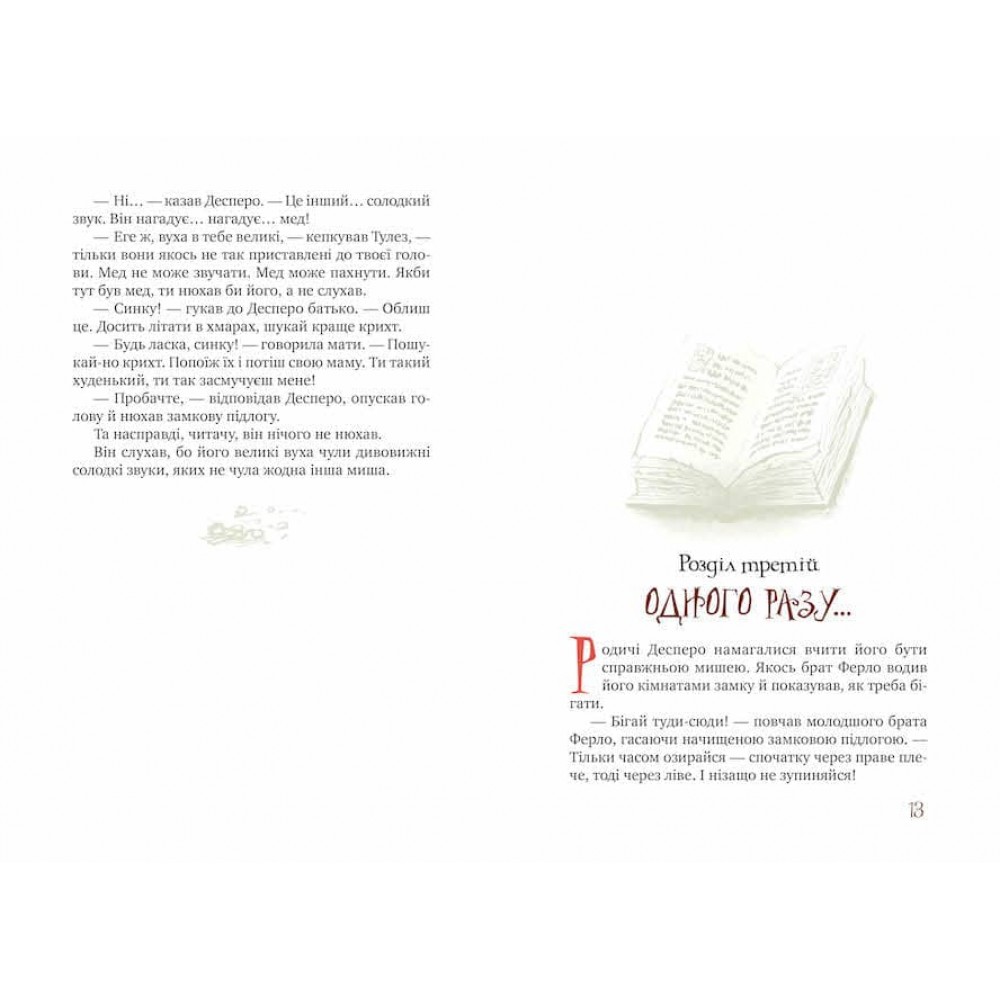 У мишачому сімействі, що живе в старовинному королівському замку, народилося мишеня на ім’я Десперо. На відміну від своїх родичів, він мав хоробре і шляхетне серце, а ще любив читати і слухати музику. Якось він побачив принцесу Горошинку і закохався в неї. А коли підступні щури хитрістю заманили принцесу в похмуре підземелля, Десперо, немов лицар в осяйних обладунках, урятував її від неминучої загибелі.