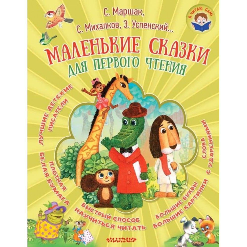 До збірки «Маленькі казки для першого читання» увійшли найкращі твори С. Маршака, К. Чуковського, В. Сутєєва, Е. Успенського та інших знаменитих авторів.