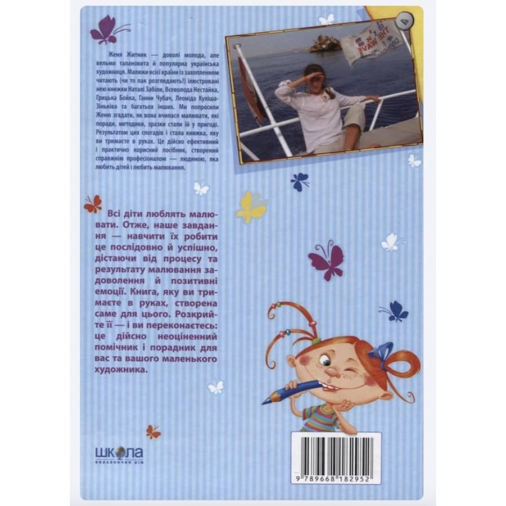Усі діти люблять малювати. Отже, наше завдання – навчити їх робити це послідовно й успішно, дістаючи від процесу та результату малювання задоволення й позитивні емоції. Ця книга створена саме з цією метою.Розкрийте її – і ви переконаєтесь: це дійсно неоціненний помічник і порадник для вас та вашого маленького художника.Автор цієї книги – Женя Житник – вельми талановита й популярна українська художниця. Малюки всієї країни із захопленням читають і розглядають ілюстровані нею книжки Наталі Забіли, Всеволода Нестайка, Грицька Бойка, Ганни Чубач, Леоніда Куліша-Зіньківа та багатьох інших.Отже, це дійсно ефективний і практично корисний посібник, створений справжнім професіоналом – людиною, яка любить дітей і любить малювати.