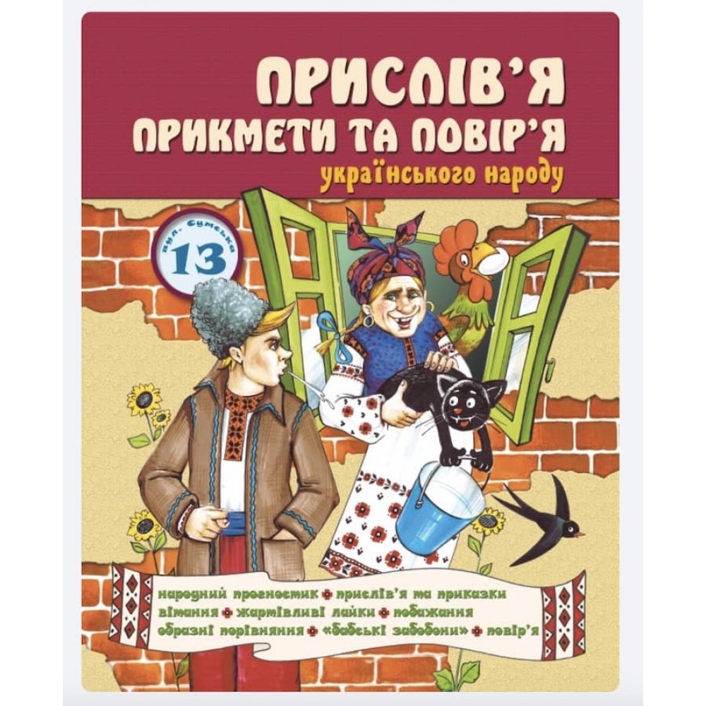 У цій збірці зібрано всі унікальні українські прислів'я, приказки та прикмети. Тут ви знайдете відображення менталітету українського народу, його вдачу та звички. Видання містить цікаві приказки та висловлювання на всі випадки життя. Також вони будуть корисні у разі повчання дітей, ви зможете навести приказку, яку дитина запам'ятає набагато краще та ефективніше, ніж просто повчальні слова, які дітям не дуже подобаються. Книга буде корисна не лише батькам, а й у навчальних закладах, садках та школах.