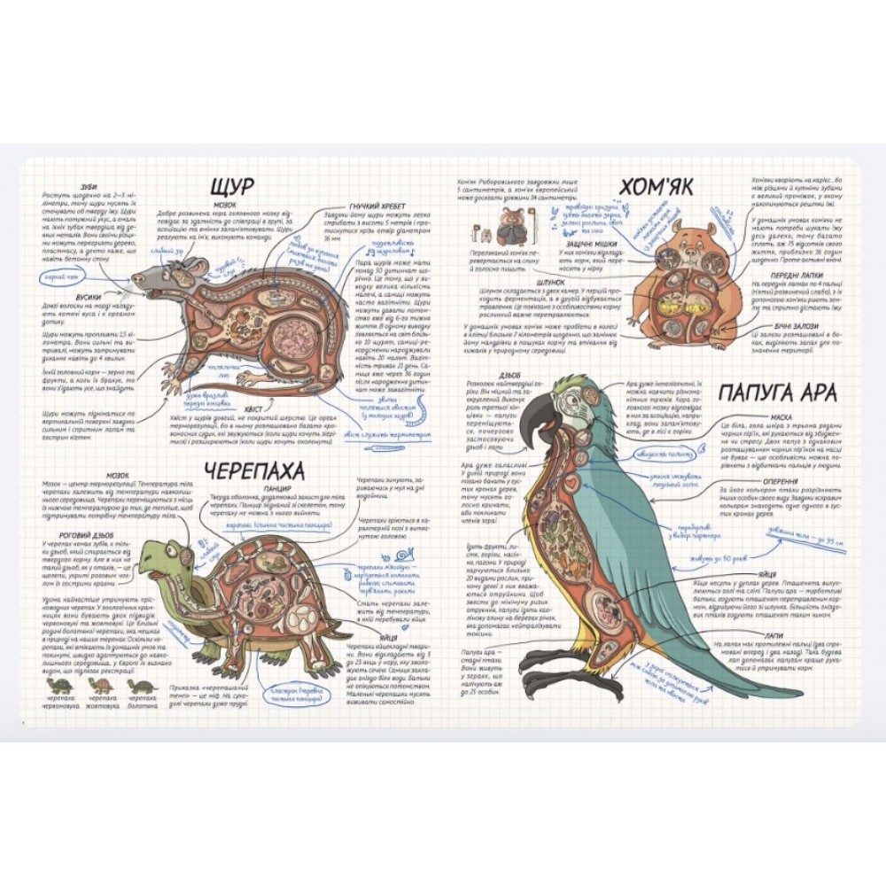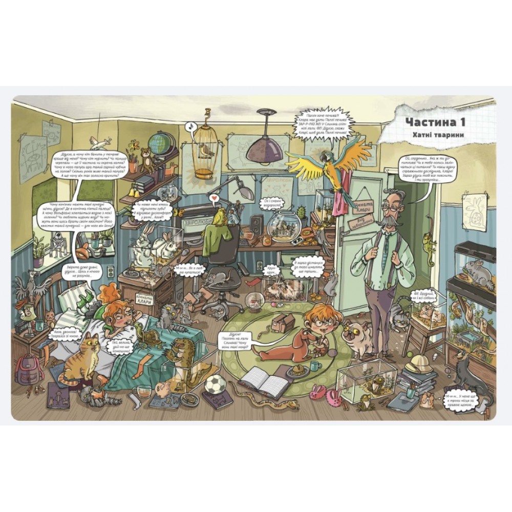 Ця книга зовсім незвичайна та неймовірно цікава. У ній розкривається чимало таємниць про тварин, що мешкають у нас удома, на фермі, у парку чи лісі. Тут ви знайдете різноманітні цікавинки про їхні звички (подеколи кумедні), особливості поведінки, внутрішньої будови й навіть мислення! Великий формат видання, детальні ілюстрації, дотепні малюнки, прикольні наукові факти в поєднанні з гумором - усе це захопить і маленького, й дорослого читача уже з першого слова!