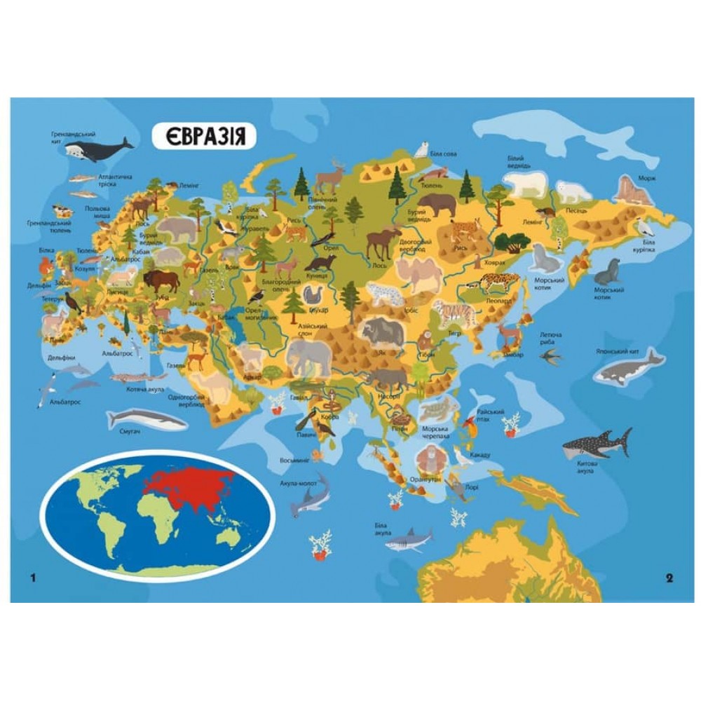 Розгорнувши цей атлас, ви вирушите в дивовижну навколосвітню подорож, під час якої познайомитеся із 178 видами тварин і дізнаєтеся, де їх можна зустріти. Розглядайте яскраві ілюстрації та знаходьте звірів, риб і птахів, яких бракує на малюнках. Доповнюйте картинки багаторазовими наліпками, використовуючи як підказку напівпрозорі зображення тварин.
