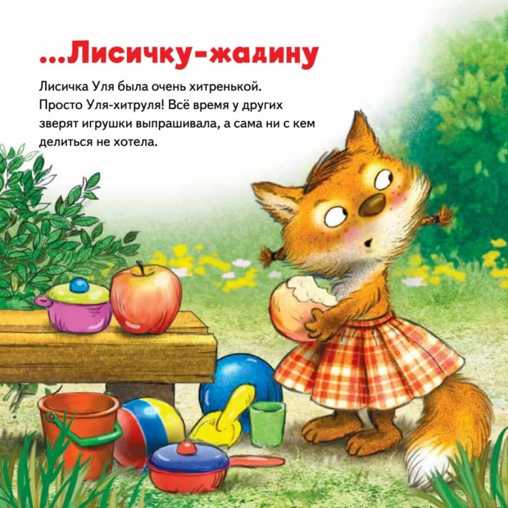 Лисичка Уля - маленька жаднюга! Випросить у зайчика морквину, а ділитися не хоче. Візьме в білочки намисто і кричить: "Не віддам!" Але одного разу звірята пішли в похід, і тоді лисичка зрозуміла, як важко доводиться тим, хто постійно скупиться. Хочеш дізнатися, що ж сталося з Вулею в поході? Сідай зручніше! Настав час доброї казки від мамулі кішечки. Книги серії "Примхливий малюк. Казки мами кішки" допомагають маленьким читачам легко впоратися з неслухняністю, впертістю, поганим сном та апетитом... Мудра мама кішечка знає всі секрети гарної поведінки! Для читання дорослими дітям.