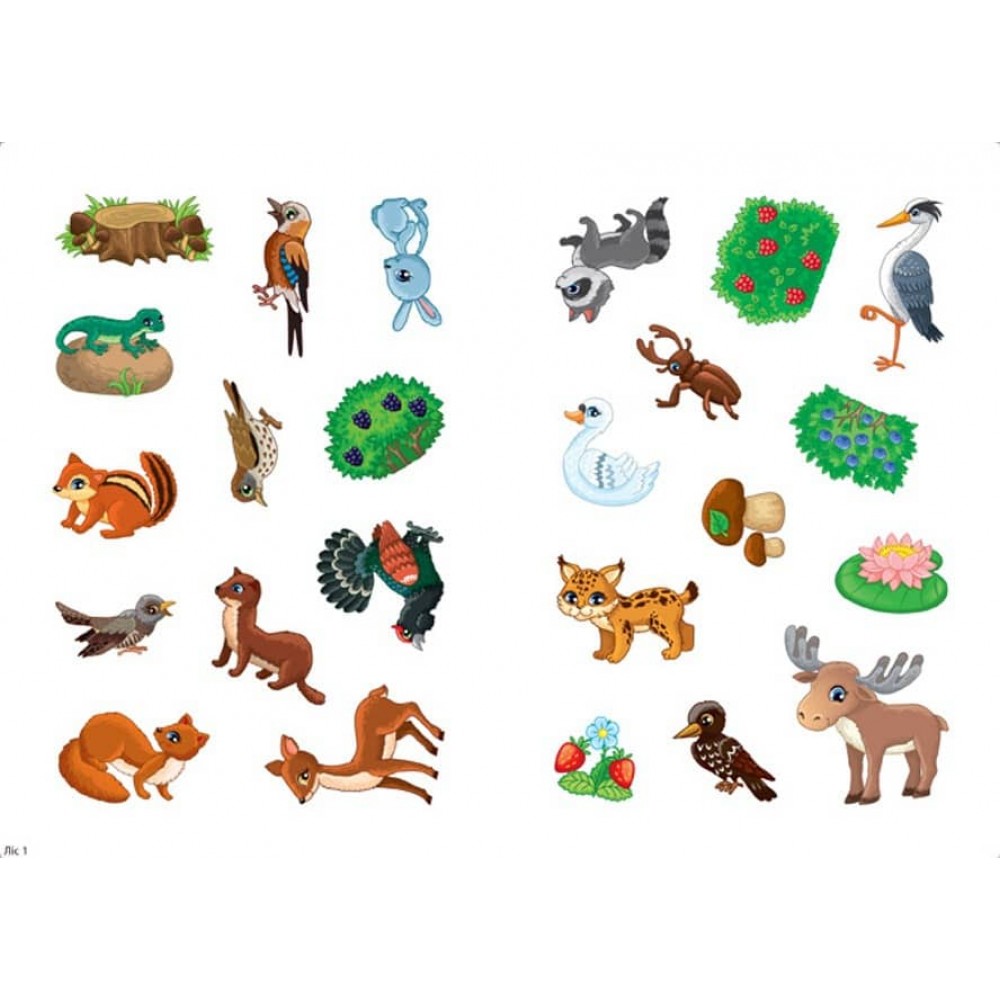 Ця книжка познайомить малюків з дикими тваринами й лісовими краєвидами, допоможе розвинути творче мислення, фантазію та кмітливість дитини, а також покращить дрібну моторику пальців рук, що сприятиме вдосконаленню мовлення. Видання призначене для маленьких мрійників, адже за допомогою багаторазових наліпок і великих тематичних ілюстрацій дитина зможе створити власний неповторний світ. Кумедні малюнки й зручний формат неодмінно сподобаються малюкам і наповнять їхнє дозвілля неймовірними враженнями!