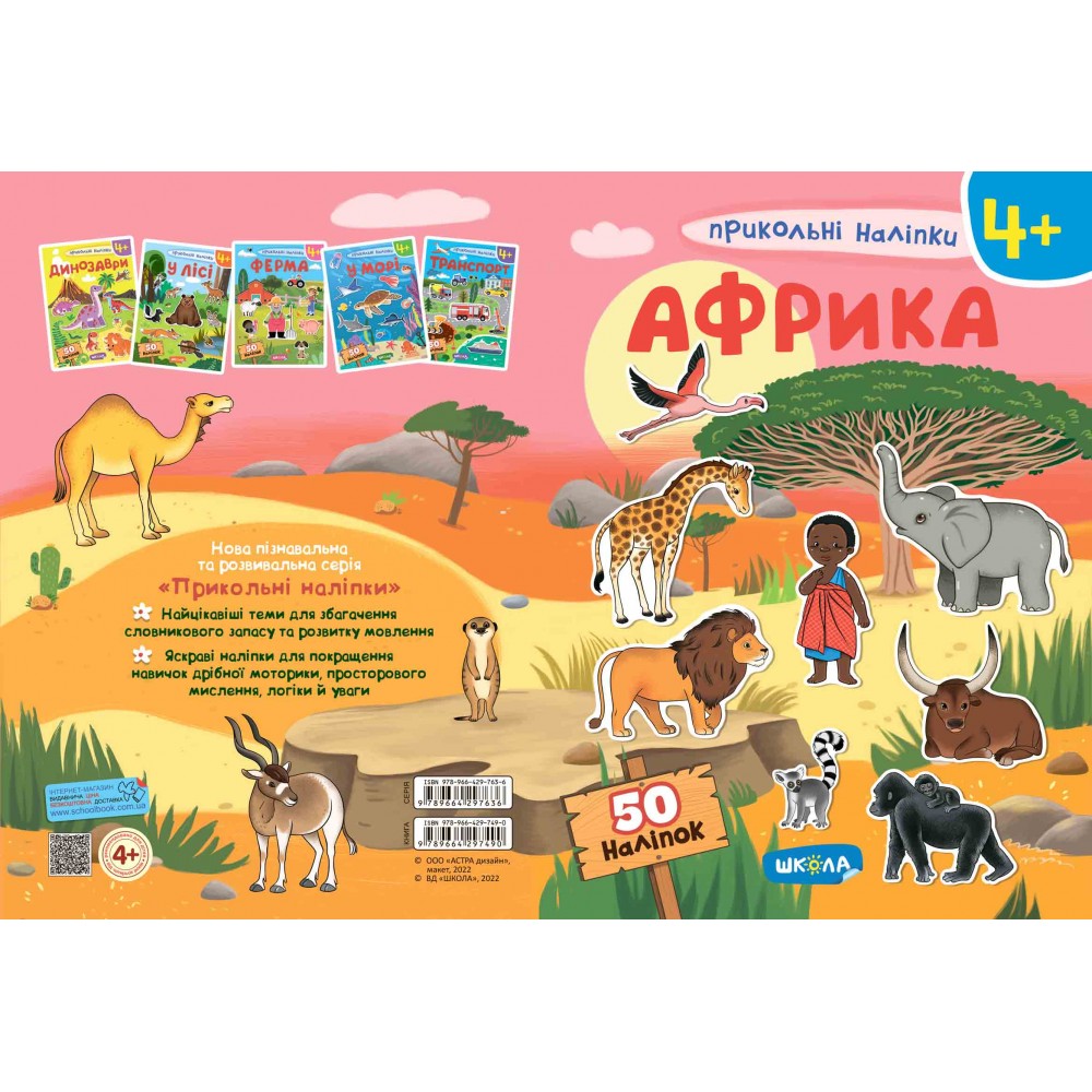 Зошити «Прикольні наліпки» для дітей від чотирьох років розроблені для збагачення словникового запасу дитини, розвитку зорової пам’яті та образного мислення. Барвисті, приємні на дотик наліпки сподобаються навіть найвибагливішим малюкам. Кожен примірник містить 50 наліпок та спеціальні сторінки для наклеювання із тематичним зображенням.