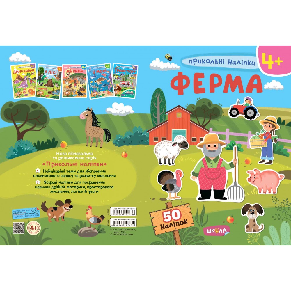 Зошити «Прикольні наліпки» для дітей від чотирьох років розроблені для збагачення словникового запасу дитини, розвитку зорової пам’яті та образного мислення. Барвисті, приємні на дотик наліпки сподобаються навіть найвибагливішим малюкам. Кожен примірник містить 50 наліпок та спеціальні сторінки для наклеювання із тематичним зображенням.