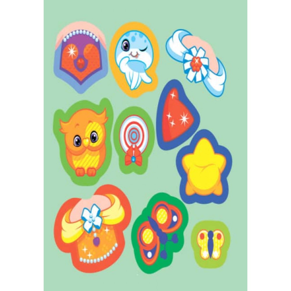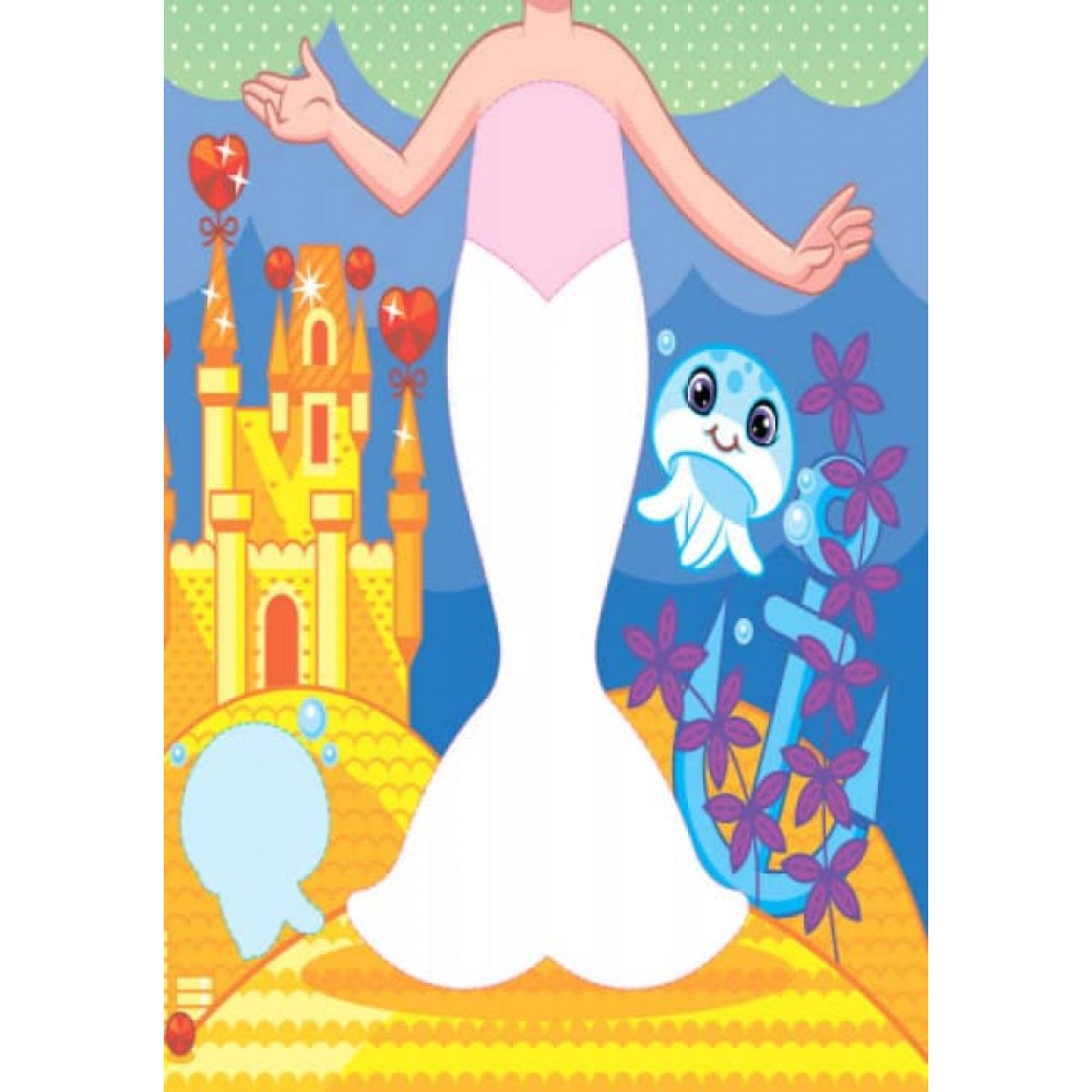 Обкладинка кожної книги має оригінальну вирубку у вигляді дівчинки-ляльки. А сторінки книги - це її вбрання. За допомогою кольорових олівців, фломастерів та доданих до книги наліпок дитина зможе розмалювати наряди для ляльки. Зразки суконь дані поруч на сторінці.