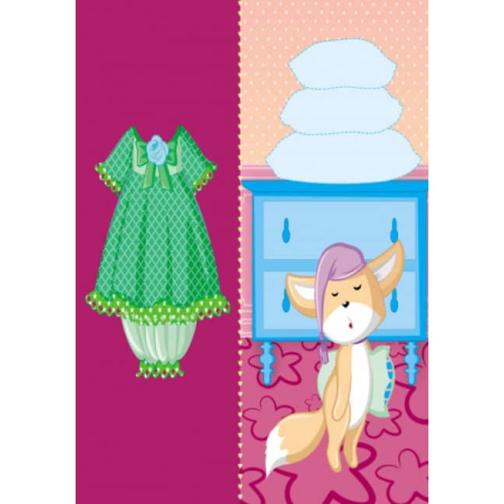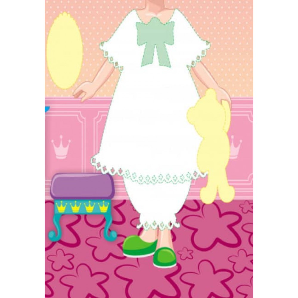Обкладинка кожної книги має оригінальну вирубку у вигляді дівчинки-ляльки. А сторінки книги - це її вбрання. За допомогою кольорових олівців, фломастерів та доданих до книги наліпок дитина зможе розмалювати наряди для ляльки. Зразки суконь дані поруч на сторінці.