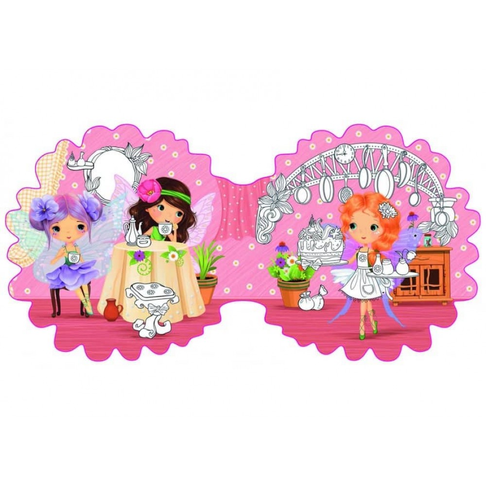 Привiт, принцесо! Мене звати Ромашка. Я квiткова фея. Запрошую тебе в чарiвний свiт, де я i мої подружки мешкаємо в маленьких будиночках-квiточках. Розфарбуй їх та прикрась за допомогою барвистих налiпок. Не забудь i про нас: добери яскравi кольори для нашого вбрання. Бери олiвцi та налiпки, якi ти знайдеш у книжках серiї «Квiтковi феї», i нумо розважатися!