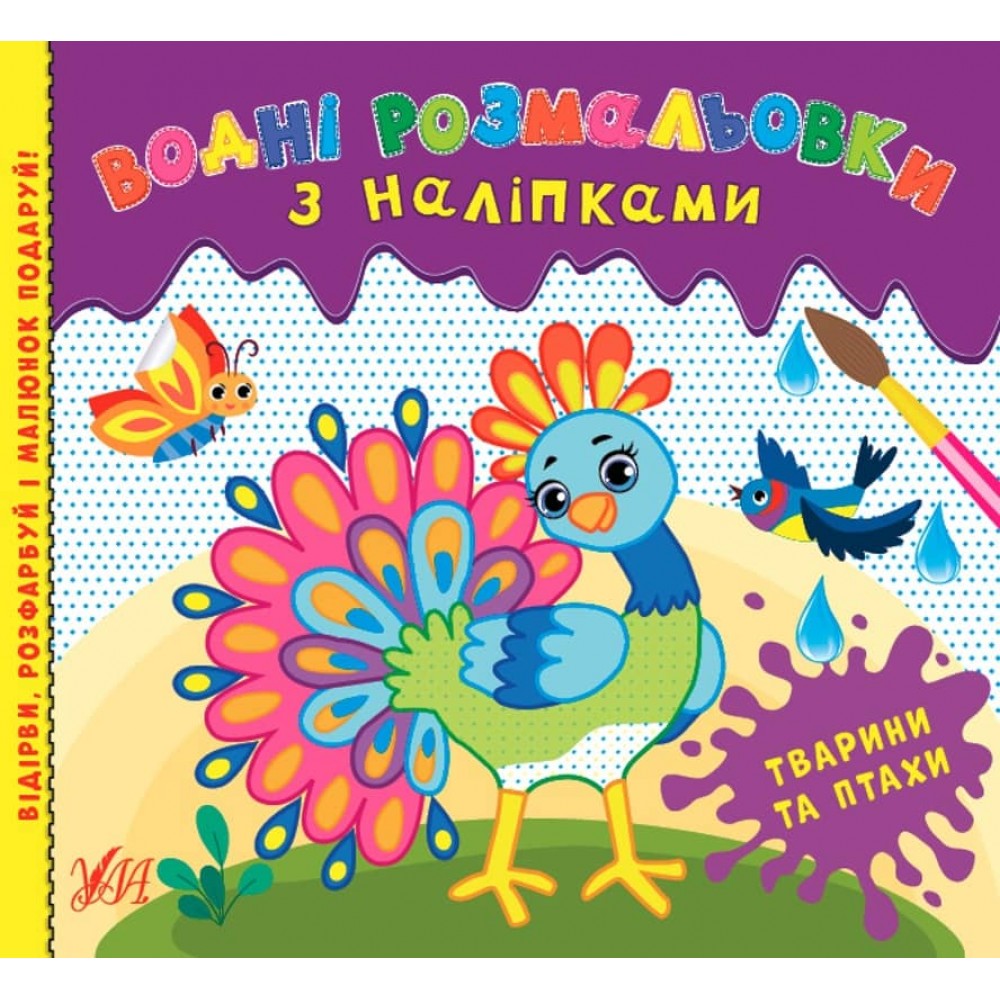 Оригінальні розмальовки з великими картинками й товстими кольоровими контурами неодмінно сподобаються малюкам, адже щоб розфарбувати різних тварин і птахів, не знадобляться ні олівці, ні фарби. Потрібно лише змочити пензлик водою, провести ним по картинці — і вона вмить стане кольоровою! Усі сторінки з перфорацією, тому дитина зможе легко вийняти малюнки із книжки й подарувати рідним чи друзям або ж влаштувати справжню художню виставку. Приємним бонусом буде набір великих кольорових наліпок, якими можна прикрасити будь-що. Видання подарує дитині захопливе дозвілля й радість від творчості!