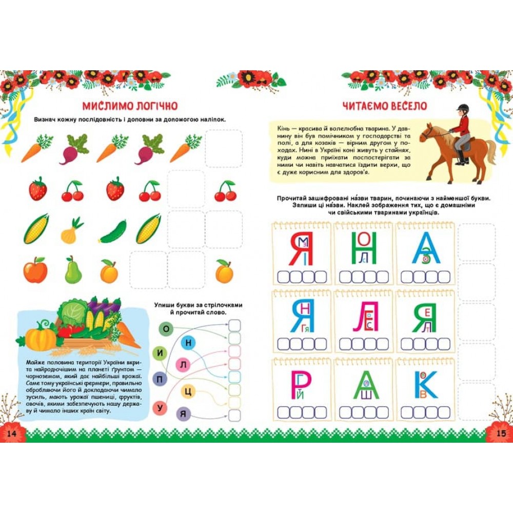 Любов до Батьківщини, як і до родини, з’являється і виховується змалечку. Захоплення красою рідної землі, насолода від милозвучності мови, повага до символів і пам’яток, турбота про ближнього, гордість за українське проростають з усвідомленням себе частинкою країни. Ця книжка допоможе в цьому й відкриє цікаві горизонти пізнання, запропонує незвичні завдання на українську тематику, розраховані на дітей від 5 років, — кросворди, загадки, ребуси, шифрограми, судоку, розмальовки, лабіринт, завдання для розвитку уваги, покращання дикції та тренування пам’яті.