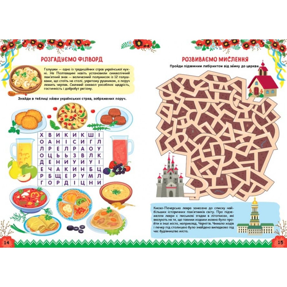 Любов до Батьківщини, як і до родини, з’являється і виховується змалечку. Захоплення красою рідної землі, насолода від милозвучності мови, повага до символів і пам’яток, турбота про ближнього, гордість за українське проростають з усвідомленням себе частинкою країни. Ця книжка допоможе в цьому й відкриє цікаві горизонти пізнання, запропонує незвичні завдання на українську тематику, розраховані на дітей від 8 років, — кросворди, ребуси, шифрограми, судоку, розмальовки, лабіринт, математичні диктанти, завдання для розвитку уваги, покращання дикції та тренування пам’яті.