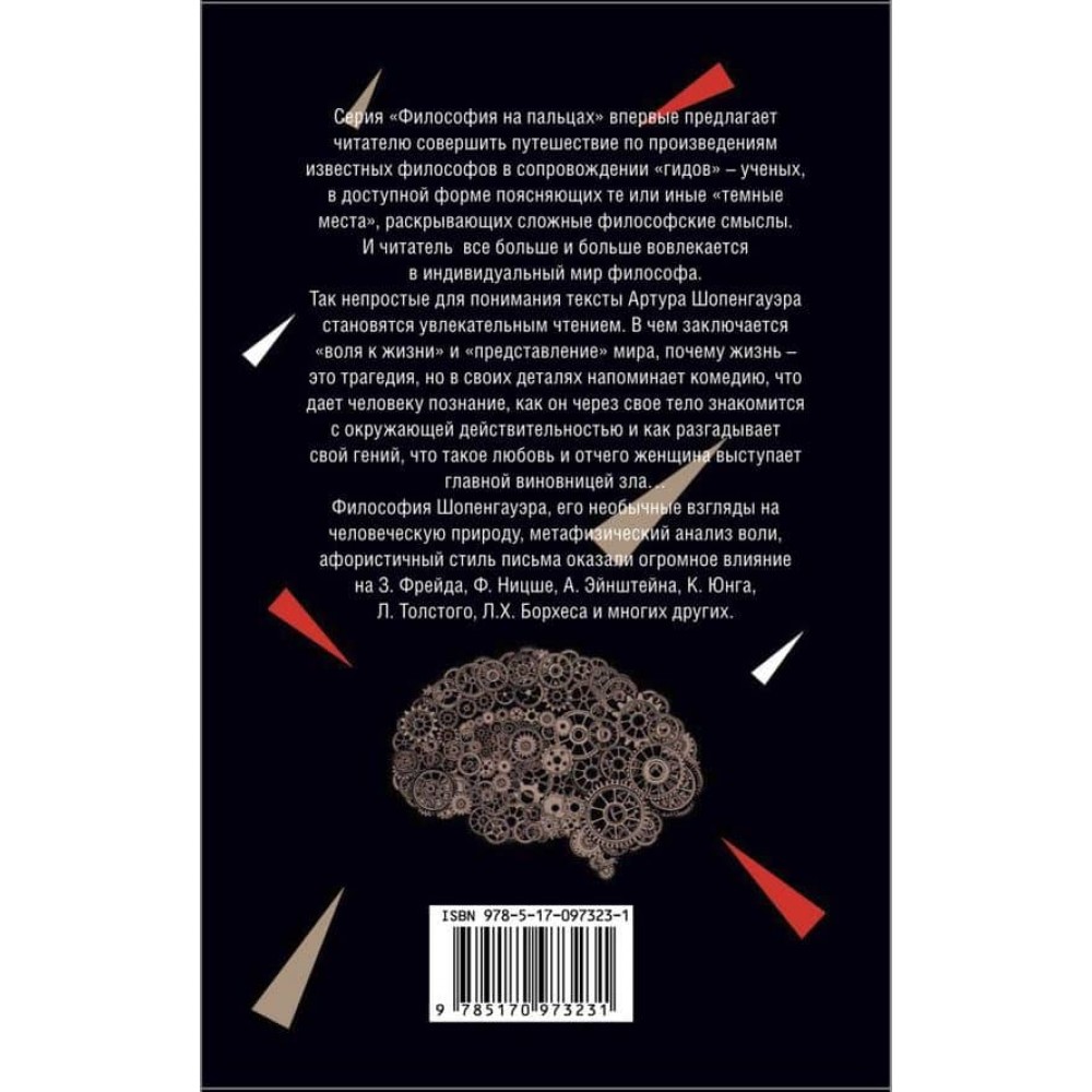 Серія "Філософія на пальцях" уперше пропонує читачеві здійснити подорож творами відомих філософів у супроводі "гідів" - вчених, які в доступній формі пояснюють ті чи інші "темні місця", розкривають складні філософські смисли. І читач дедалі більше і більше втягується в індивідуальний світ філософа. Так непрості для розуміння тексти Артура Шопенгауера стають захопливим читанням. У чому полягає "воля до життя" та "уявлення" світу, чому життя - це трагедія, але у своїх деталях нагадує комедію, що дає людині пізнання, як вона через своє тіло знайомиться з навколишньою дійсністю та як розгадує свій геній, що таке кохання та чому жінка виступає головною винуватицею зла... Філософія Шопенгауера, його незвичайні погляди на людську природу, метафізичний аналіз волі, афористичний стиль письма справили величезний вплив на З. Фройда, Ф. Ніцше, А. Ейнштейна, К. Юнга, Л. Толстого, Л. Х. Борхеса і багатьох інших.