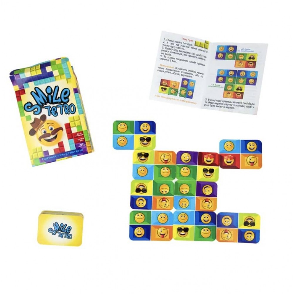 У «Smile tetro» (Смайл Тетро) буде цікаво грати і дітям, і підліткам, і дорослим. Гра складається з 45 карток, на яких намальовано 4 різноколірні клітинки. Мета гравців – викладати картки та поєднувати їх сторонами так, щоб з'єднати однакові за кольорами клітинки. Чим більше вдасться зібрати комбінацій, тим більше балів можна заробити. Але доведеться добре подумати, адже нова ваша викладена з рук картка може посприяти умовам для перемоги суперника.