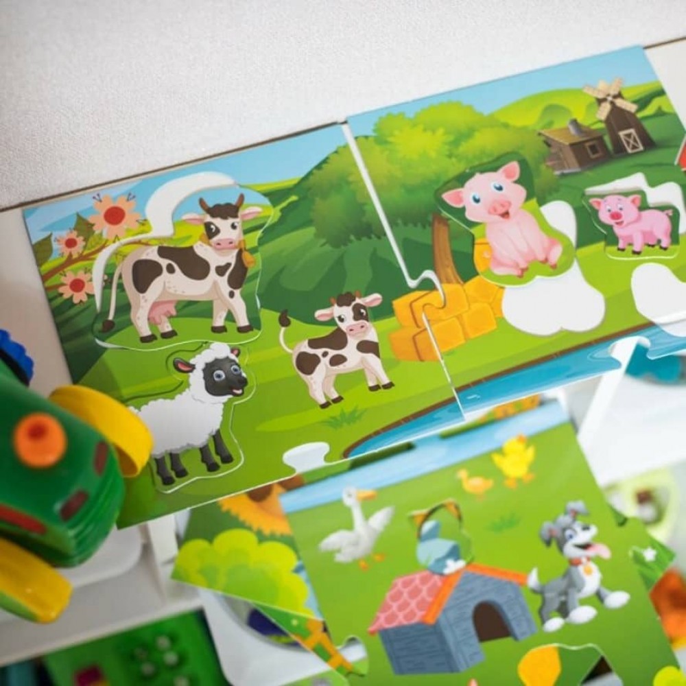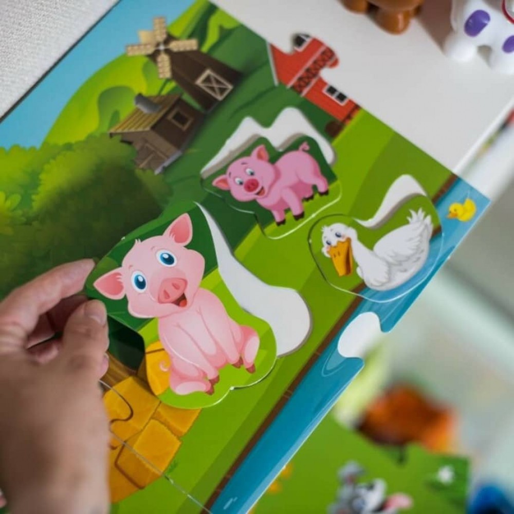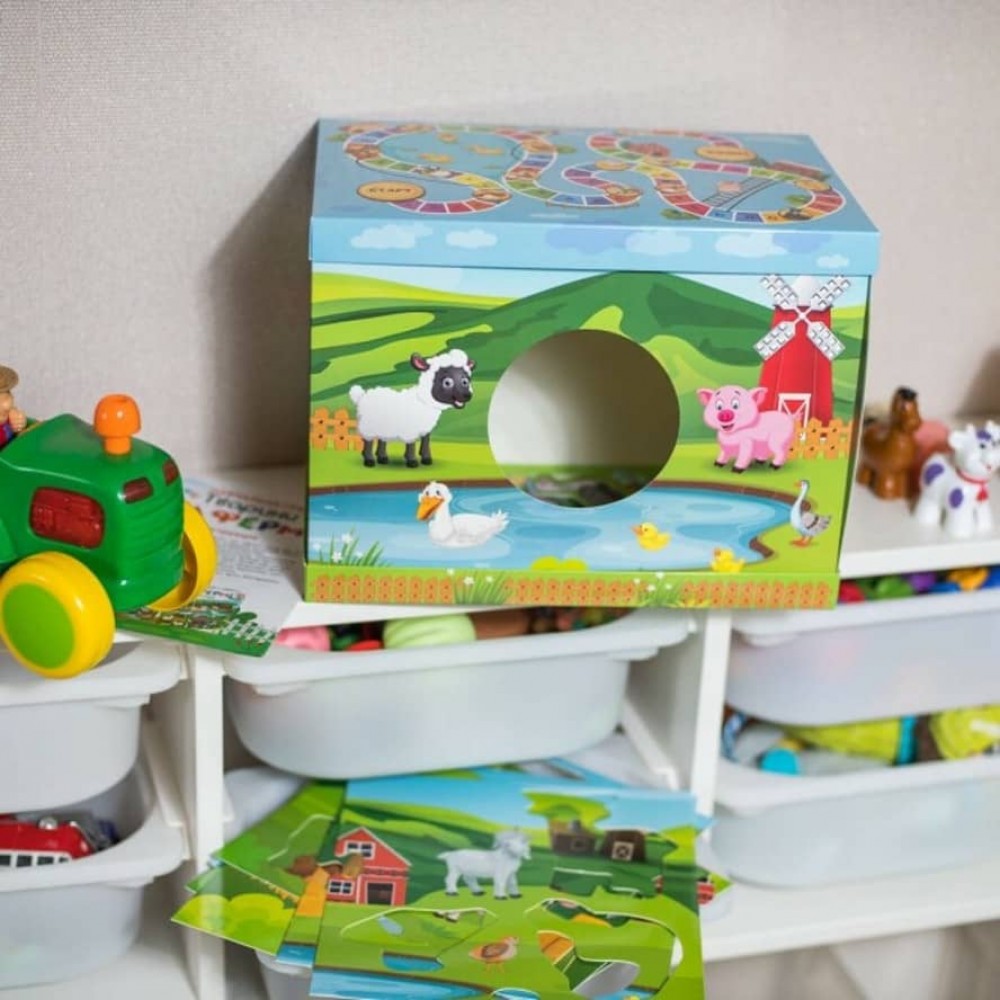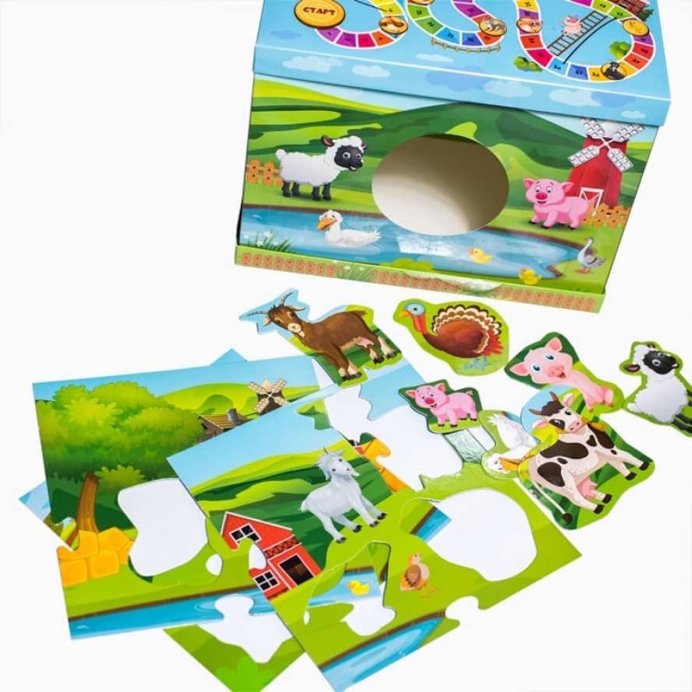 Гра 1 «Відгадай тваринку та склади пазли» - складаємо сюжетну картинку ферму; - збираємо бокс, потім в його отвір малюк просуває руку і вибирає навпомацки пазл з тваринкою, яку потім потрібно буде вгадати