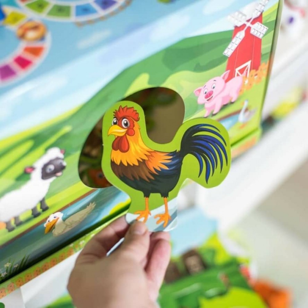 Гра 2 «Хто перший?» - для гри беремо верхню частину боксу, кубик та фішки. Кидаємо кубик і робимо кроки по ігровому полю. Коли фішка зупиняється на спеціальній клітинці гравець повинен виконати завдання, назвати тварину та промовити, як вона. Перемагає той, хто першим фінішує!