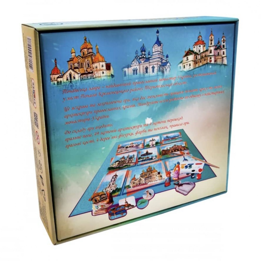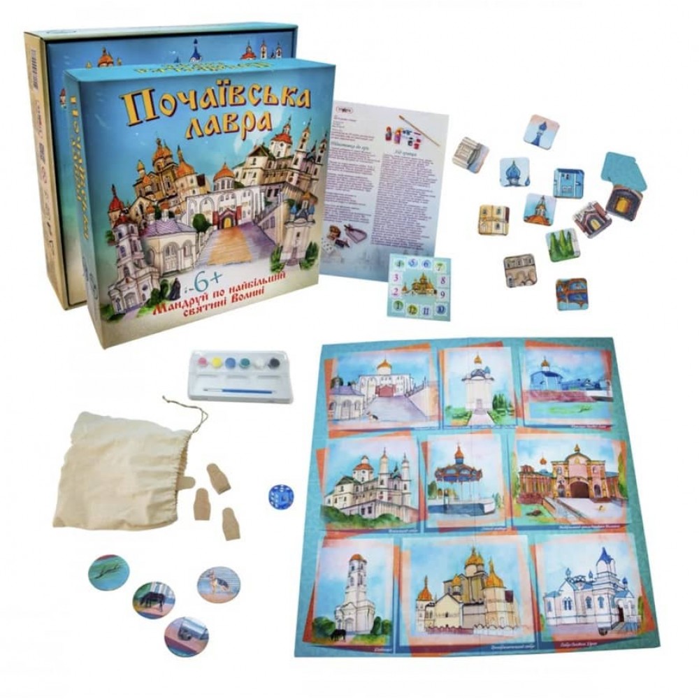 Настільна гра «Почаївська лавра» Strateg (30102) поєднує гру з пізнанням та розвиває художні здібності. Малюків чекає захоплююча подорож однією зі святинь України – православним храмовим комплексом та монастирем у місті Почаєві. А також знайомство з їхніми визначними пам'ятками і все це у доступній ігровій формі.