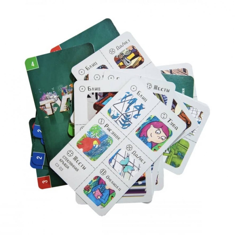 Головний предмет гри – дерев'яна туба, яка встановлюється на столі. Усі гравці отримують ігрові поля з будь-яким сюжетом. Один із гравців стає здаючим, вибирає картки із завданнями та відповідно до очок, що випали на кубику, одним із способів – словами, малюнками чи жестами – описує предмет на ігровому полі. Гравець, який першим схопив тубу, відповідає на запитання. Якщо відповідь неправильна, він повинен повернути тубу на місце і передати хід іншому гравцю.