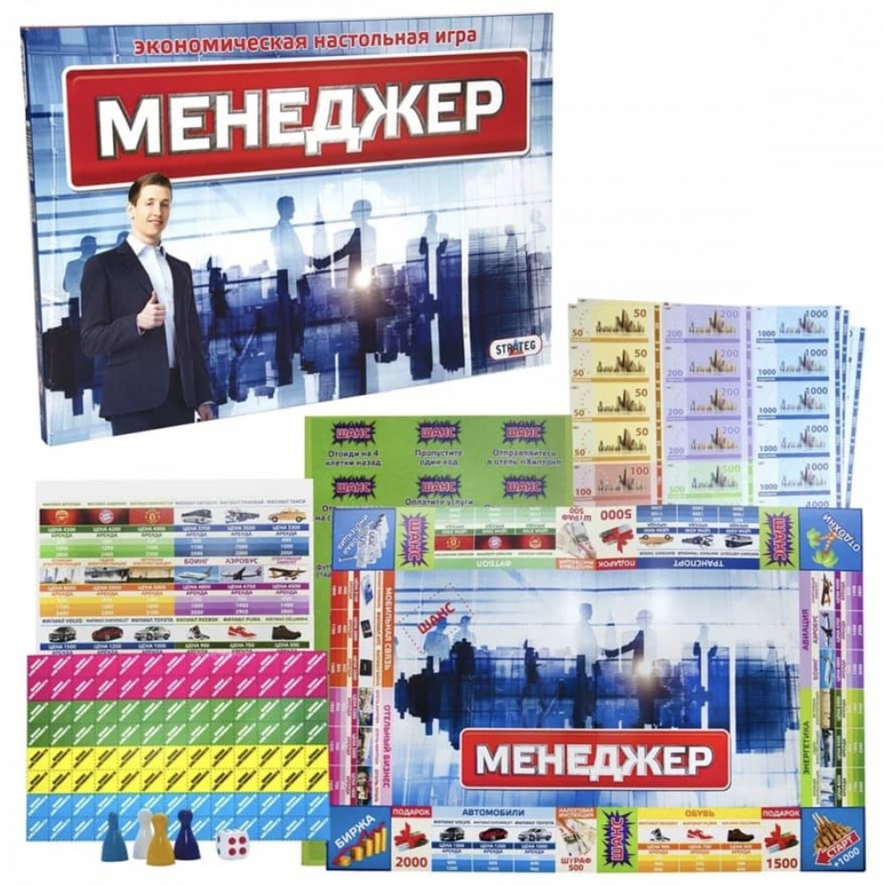 Багато хто вважає, що економіка – щось нудне, далеке, абсолютно абстрактне поняття. Настільна гра «Менеджер» Strateg (355) спростує всі ці твердження. Експресивне ігрове поле та великі фішки з перших хвилин гри залучать навіть найскептичніше гравця.