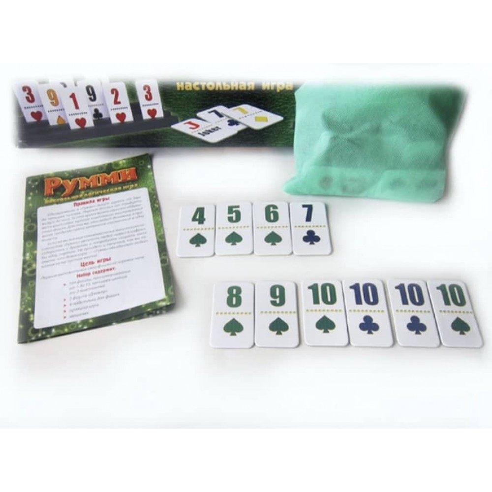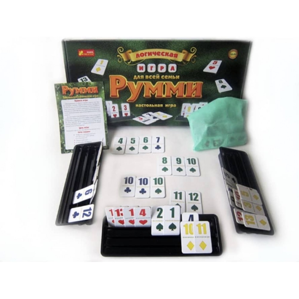 Настільна гра «Руммі» (Rummy) - одна з найвідоміших ігор світу, вона «затягує», «ламає голову» і «вмикає мозок». Мета гри: першим скласти з усіх наявних на підставці фішок комбінації із чисел і мастей згідно з правилами гри. Величезна кількість комбінацій і мінлива ситуація на полі роблять гру непередбачуваною. Девіз гри «Руммі об'єднує людей» виник не на порожньому місці! Гра підійде для приємного проведення часу невеликої компанії.