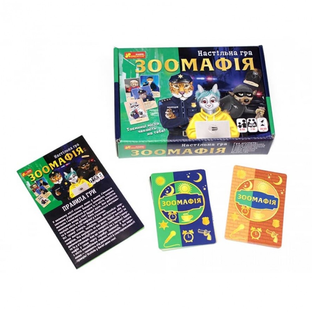 Цікава загадкова карткова гра на детективну тематику. Усі гравці таємничого міста звірів отримують свою роль. У місті усе загадкове. Майже ніхто ні про кого нічого не знає. Лише злочинці знають усіх в обличчя. Мирні жителі в боротьбі протистоять мафії. Хто переможе? Хто стане володарем міста? Усе в ваших руках!