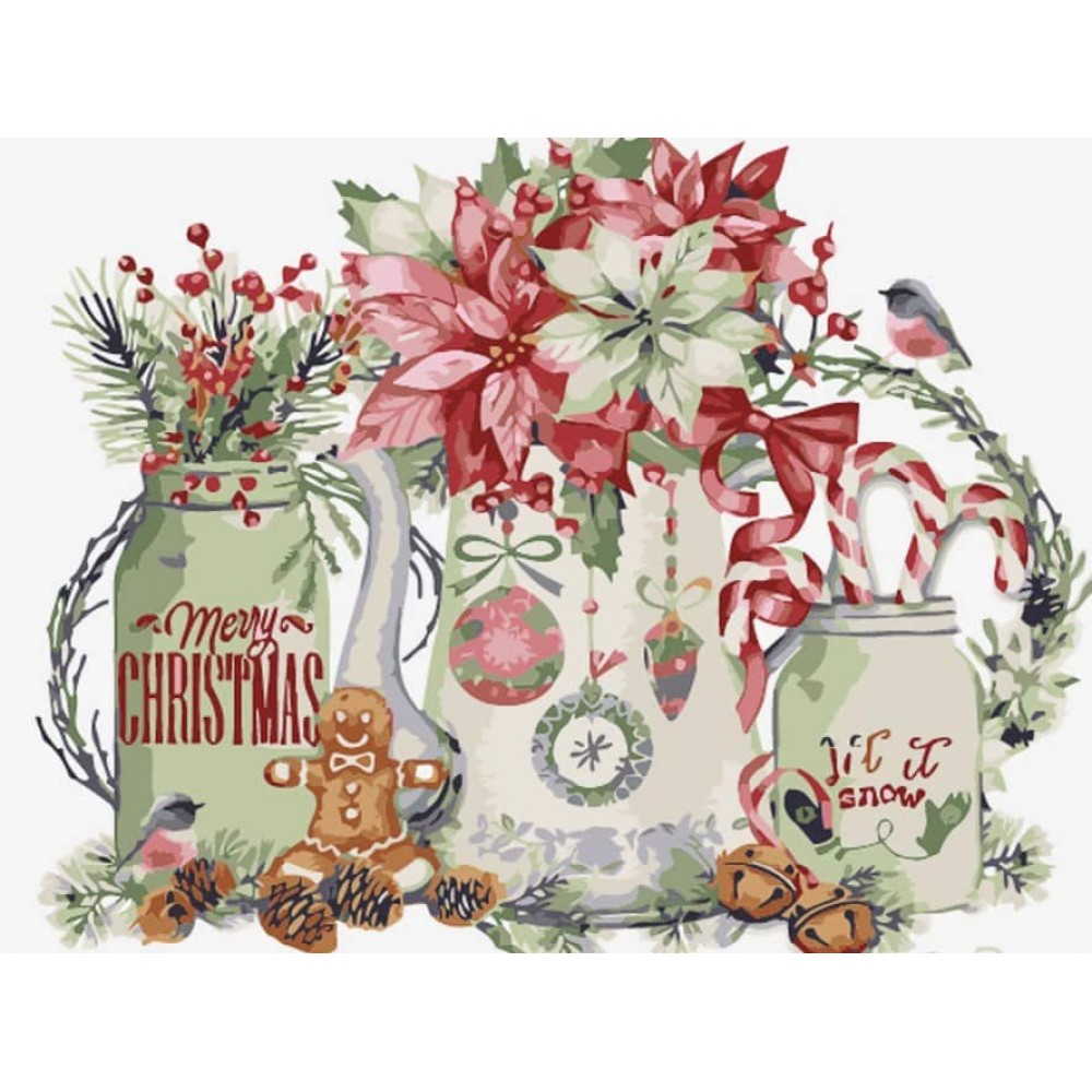 Картина за номерами Strateg ПРЕМІУМ Новорічні квіти та пряності розміром 30х40 см, SS6841