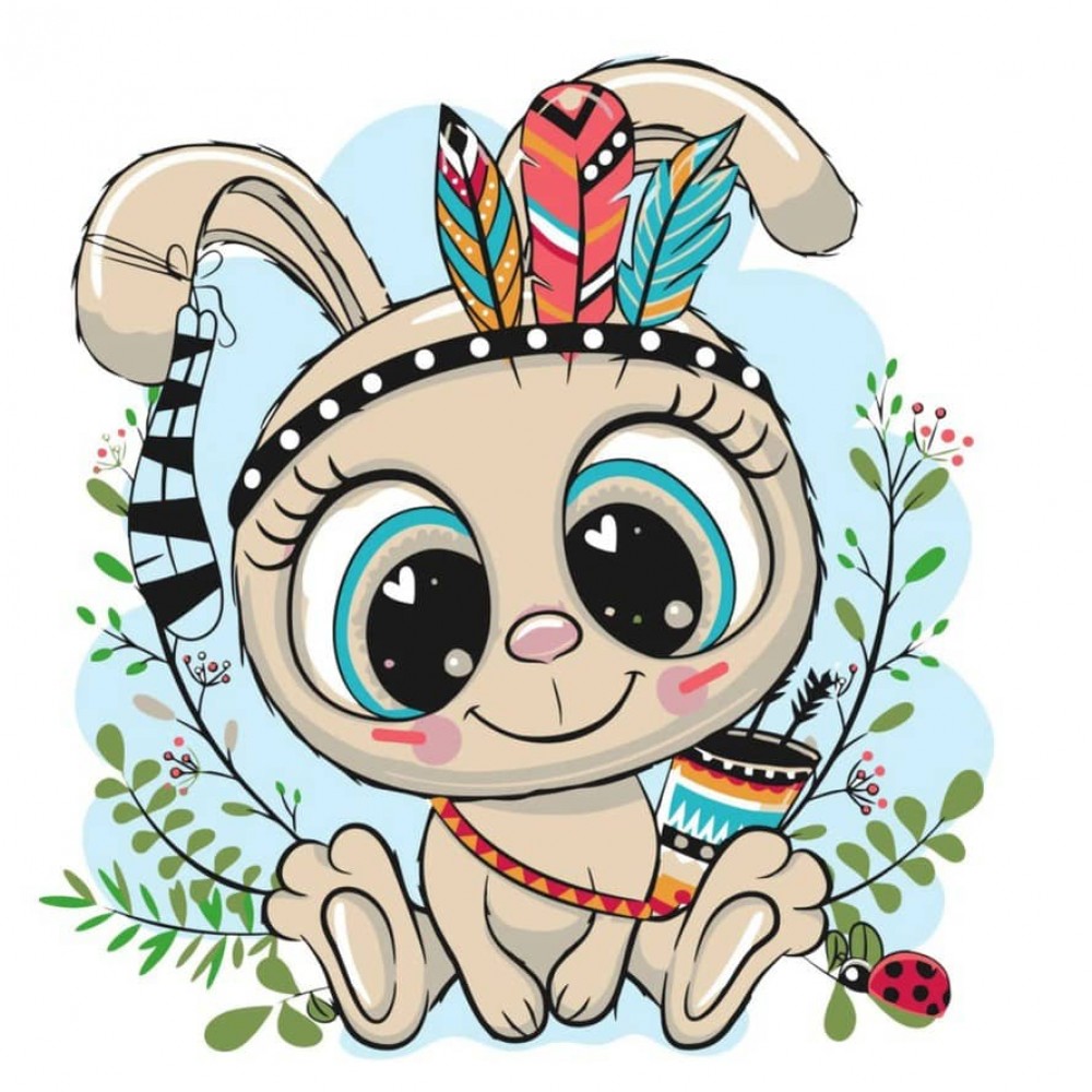 Картина за номерами Strateg ПРЕМІУМ Зайченя та пір'я з лаком розміром 30х30 см, ES045