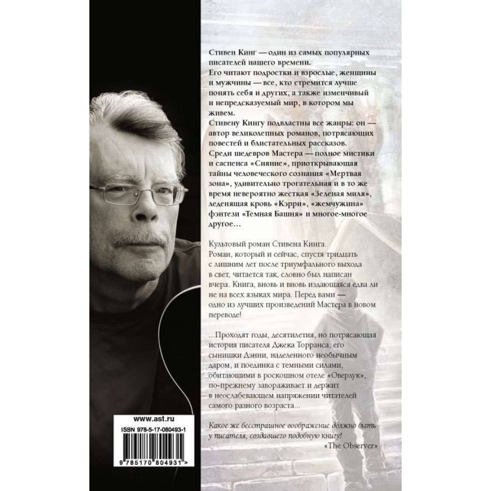...Минають роки, десятиліття, але приголомшлива історія письменника Джека Торранса, його синочка Денні, наділеного незвичайним даром, і поєдинку з темними силами, що мешкають у розкішному готелі «Оверлук», як і раніше, зачаровує і тримає в неослабній напрузі читачів найрізноманітнішого ...