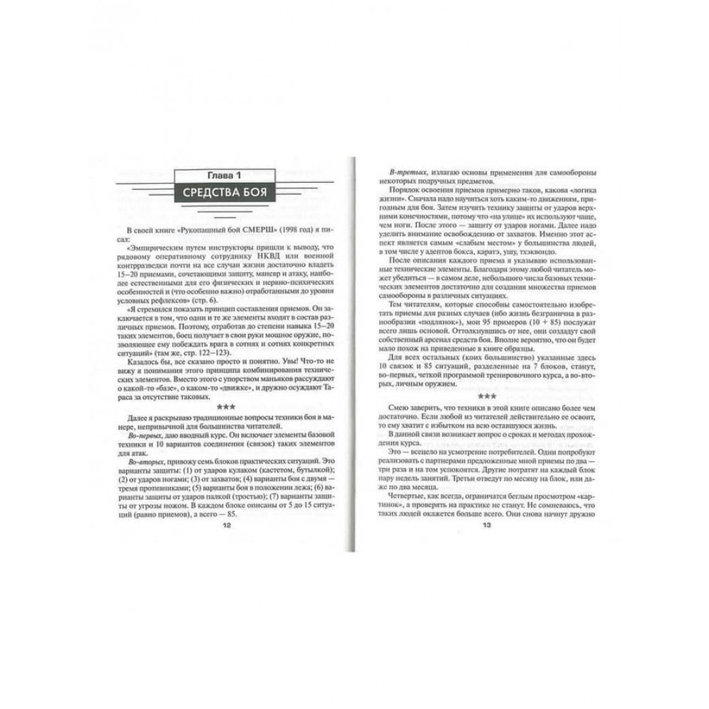 Ця книга всесвітньо відомого експерта в галузі бойових єдиноборств є продовженням його однойменного бестселера 1997 року. Глибоке знання предмета, бездоганна логіка і чудовий стиль розповіді, а також гумор - все це присутнє в посібнику, пропонованому для самостійної підготовки до самооборони. .Матеріал книги, включає вступний курс (10 зв'язок прийомів), сім блоків практичних ситуацій (85 прикладів), рекомендації по використанню підручних предметів в якості зброї, виклад основ психологічної підготовки.